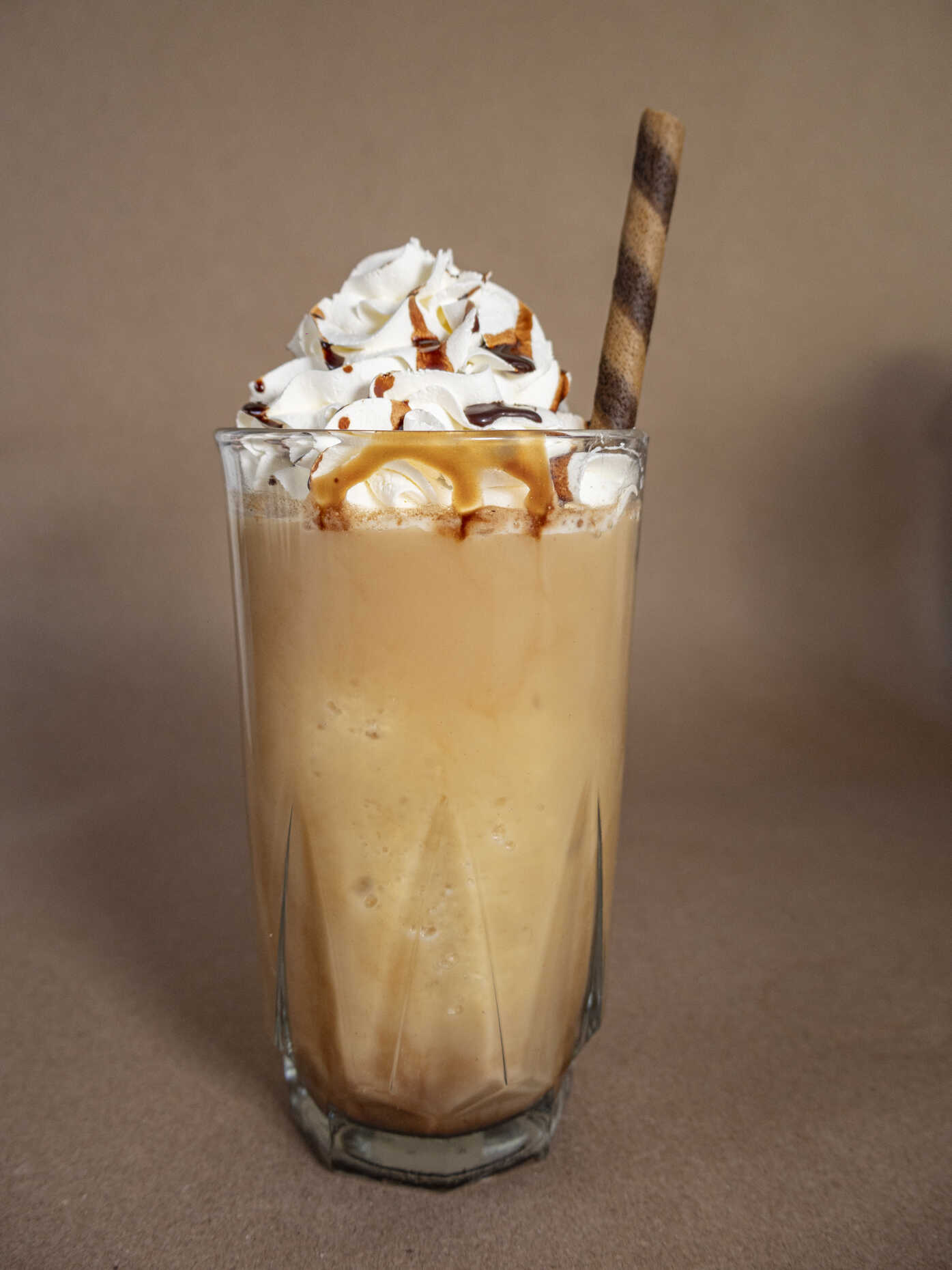 Bebida a base de leche, hielo, café de especialidad y crema batida