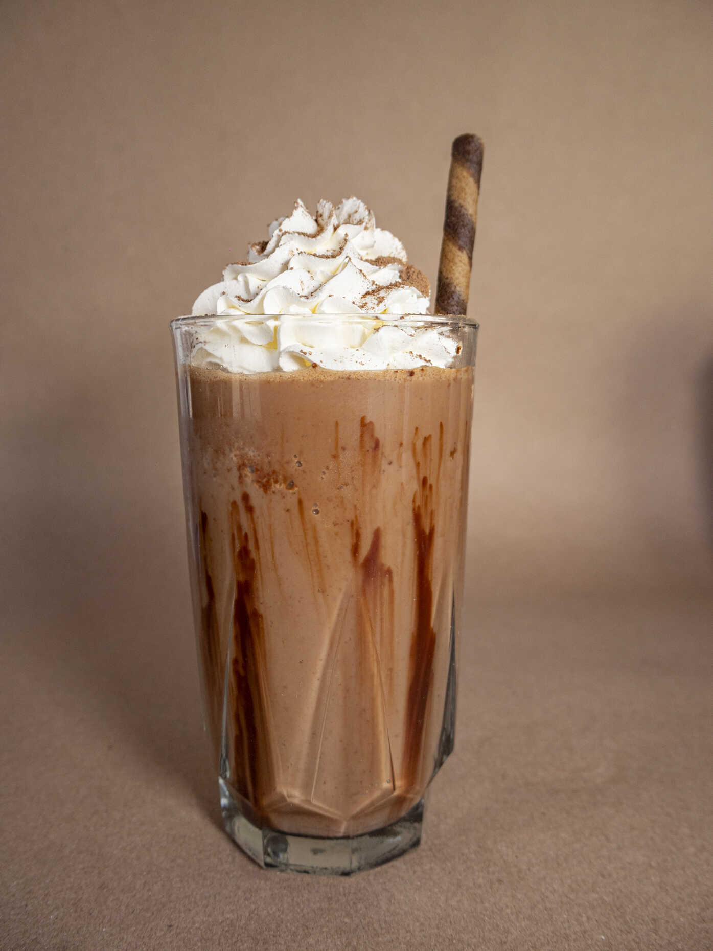 Bebida cremosa y espesa hecha con helado de chocolate, nutella, y crema batida