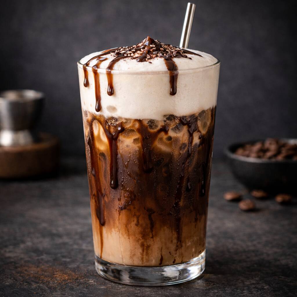 Espresso de especialidad con chocolate intenso, servido sobre hielo y coronado con una cold foam cremosa