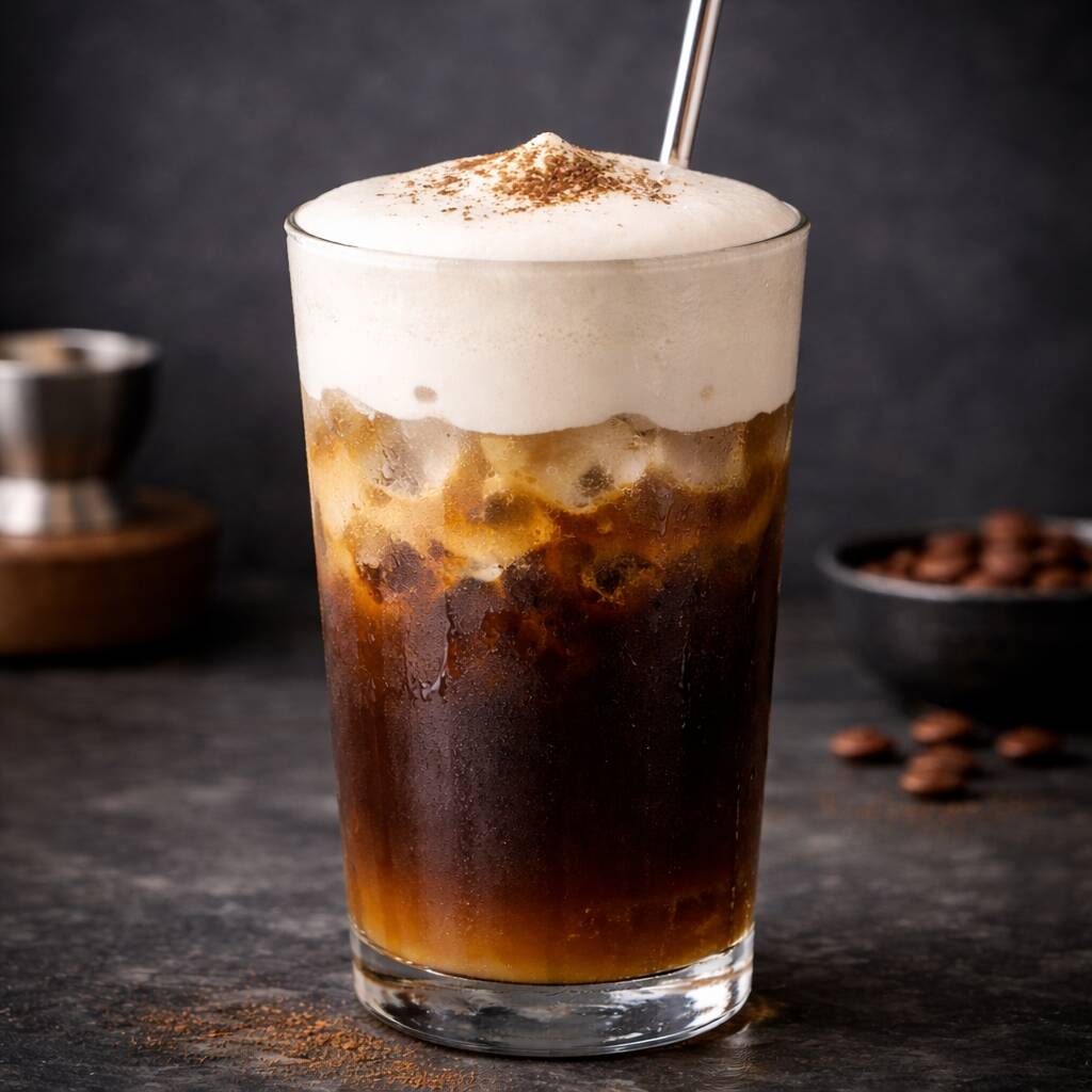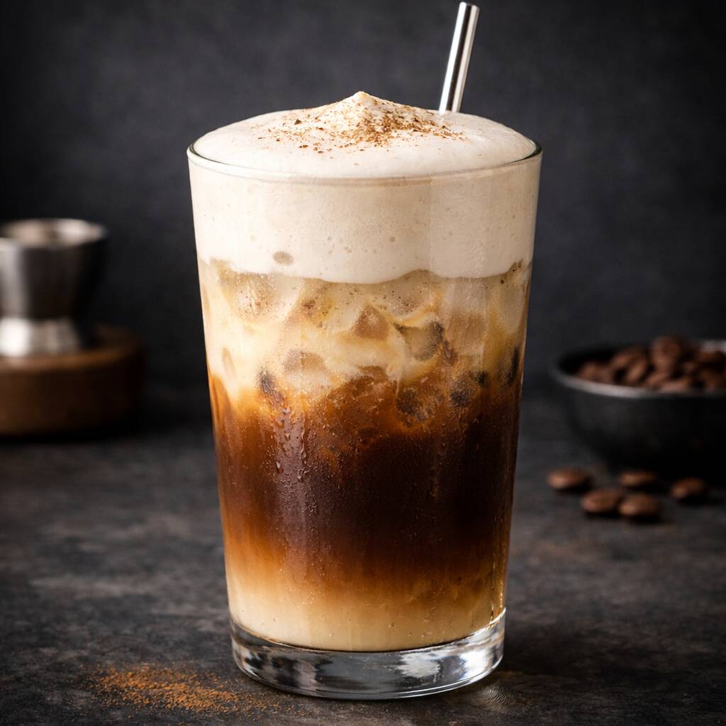 Espresso de especialidad con leche fría y hielo, terminado con una capa sedosa de cold foam