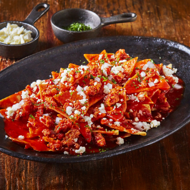 Elige salsa verde o roja y agrega tu proteina favorita, acompañadas con crema, queso, cebolla y pan 1 pz