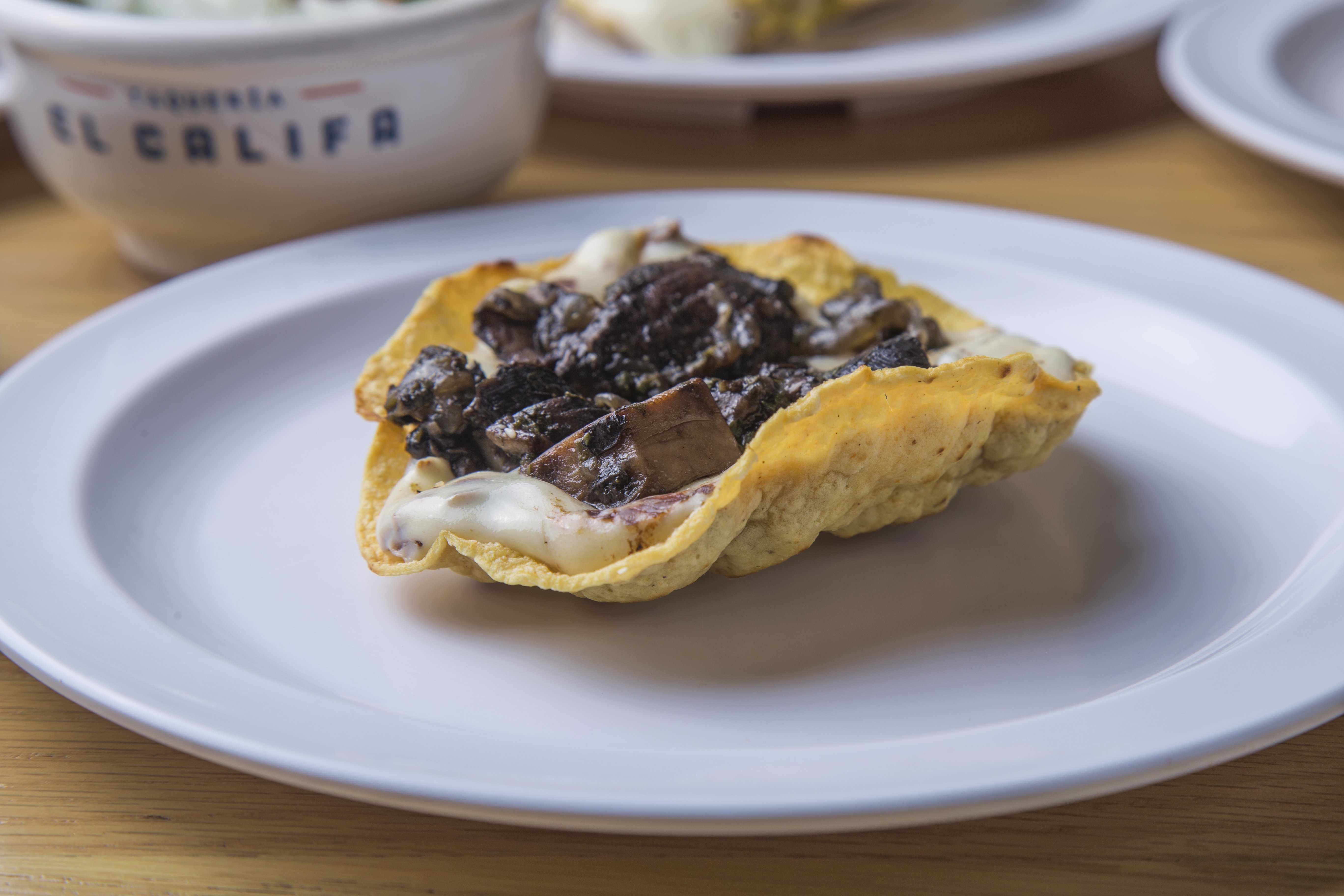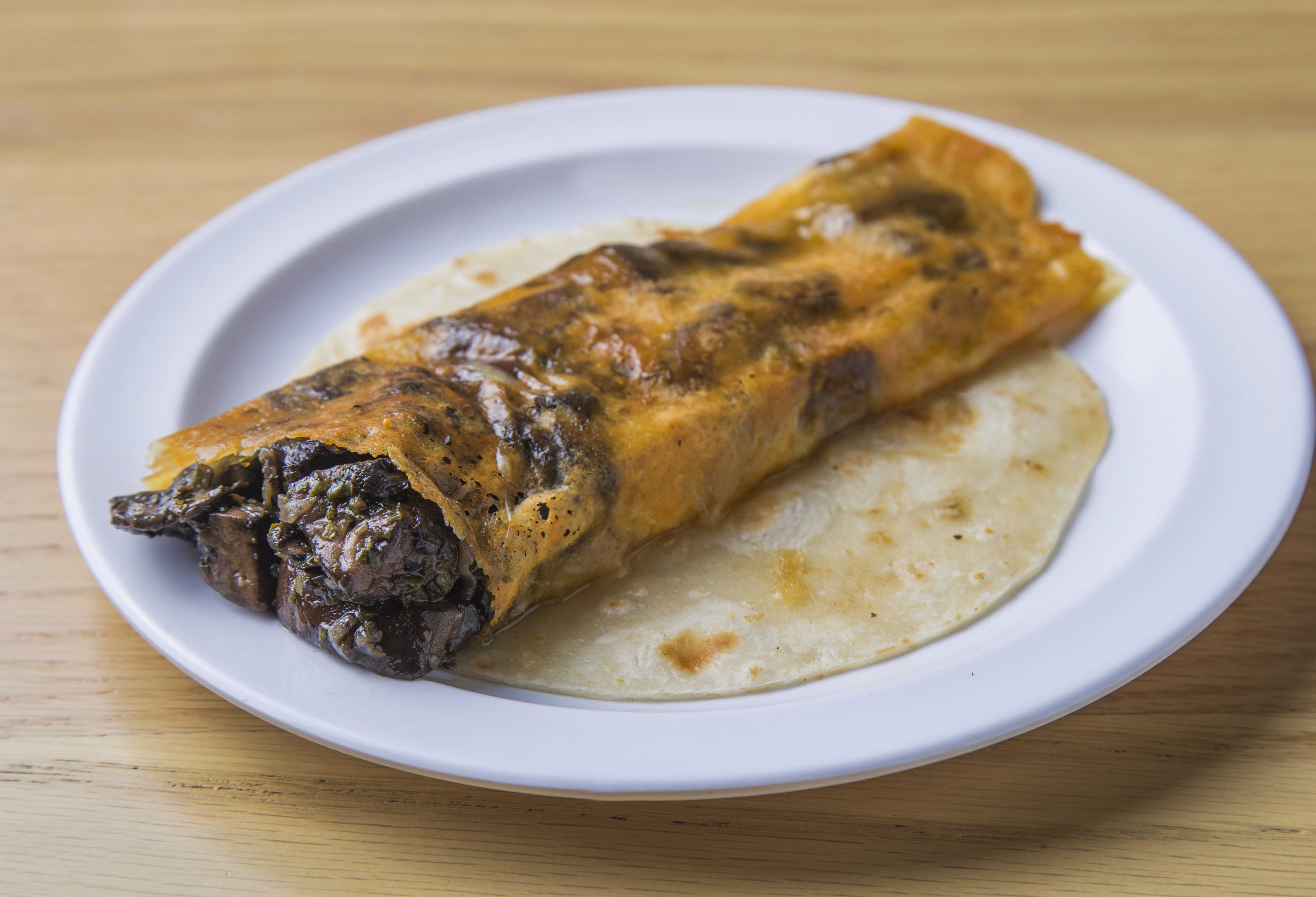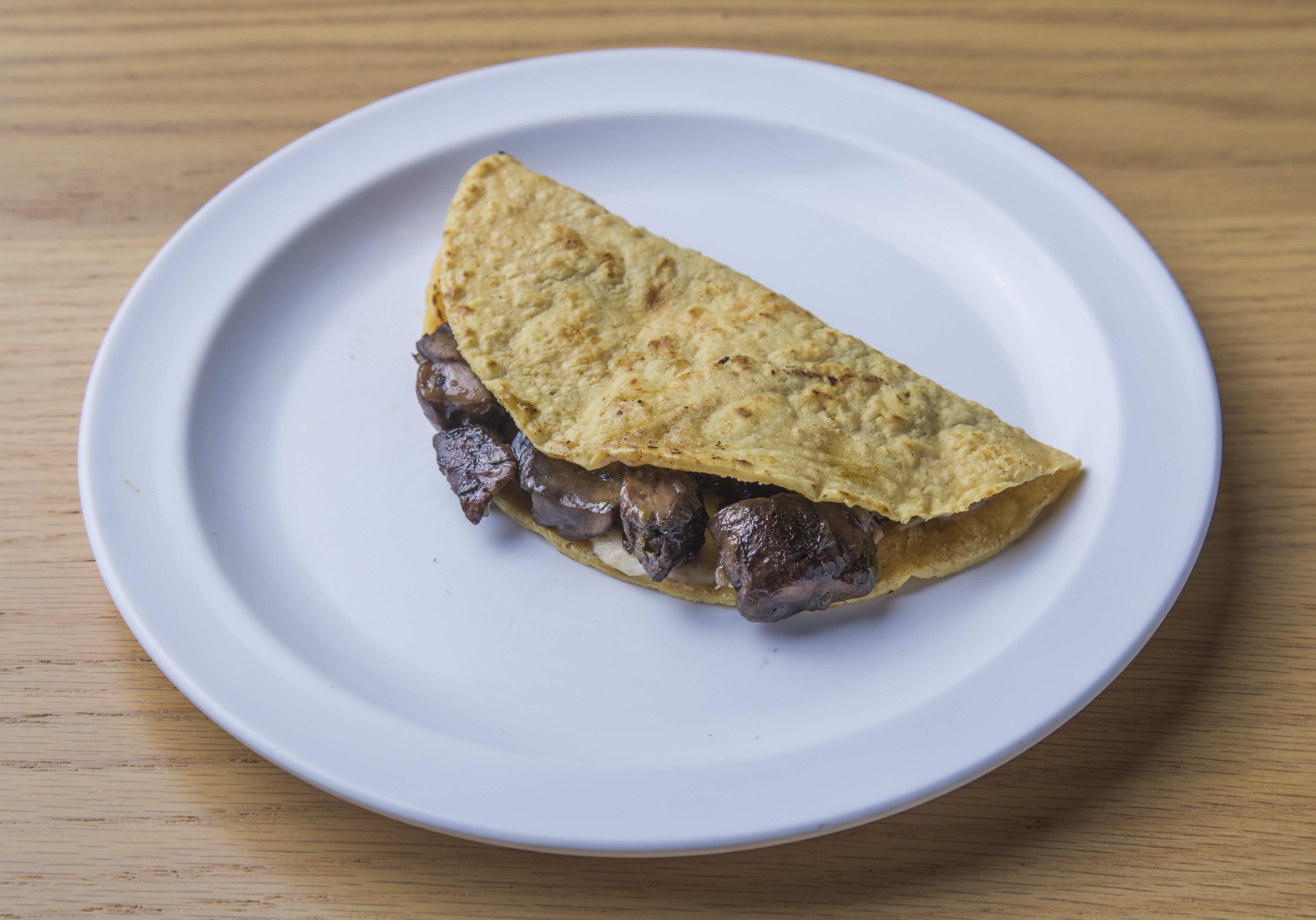 100 g Tortilla de maíz recién hecha con queso oaxaca y champiñones portobello