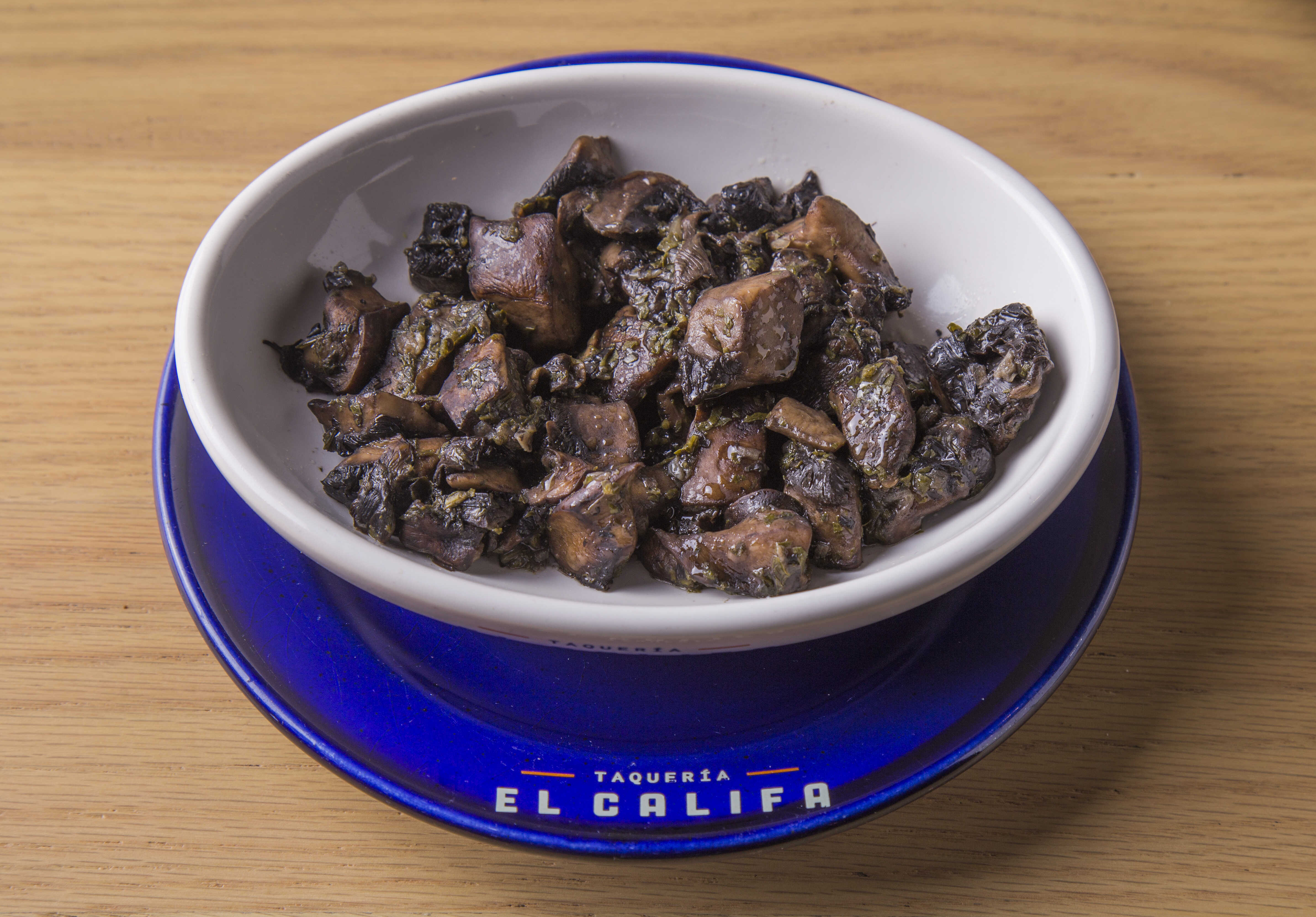 150 g + 3 tortillas de maíz Champiñones portobello asados con cebolla y ajo