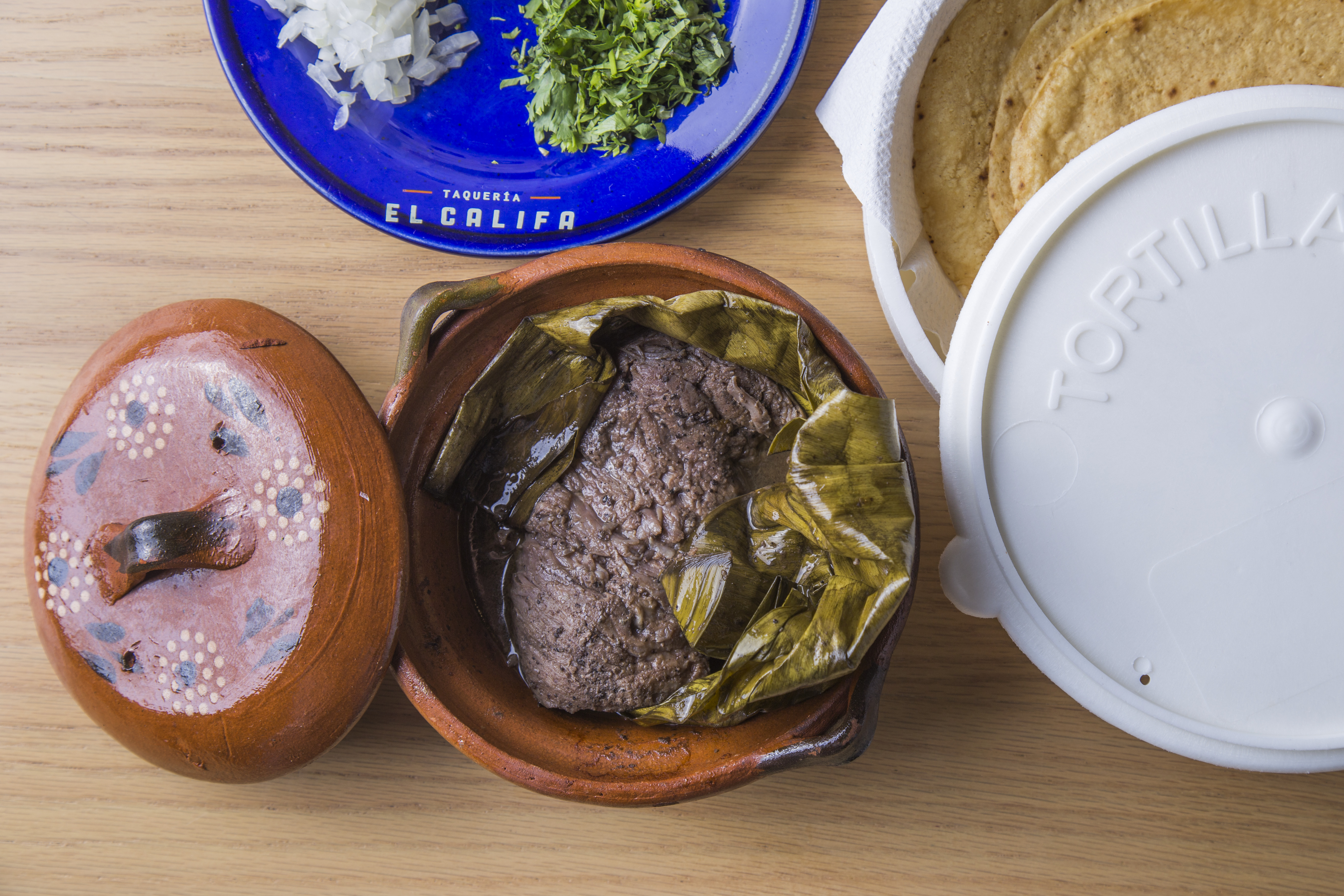 250 g Barbacoa de arrachera de res estilo Hidalgo, envuelta en hoja de plátano. Los complementos cebolla y cilantro se envían por separado