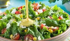 Frescas lechugas, acompañadas de jitomate, elote, zanahoria, queso panela y camarones rebozados con aderezo agripicante de mango.