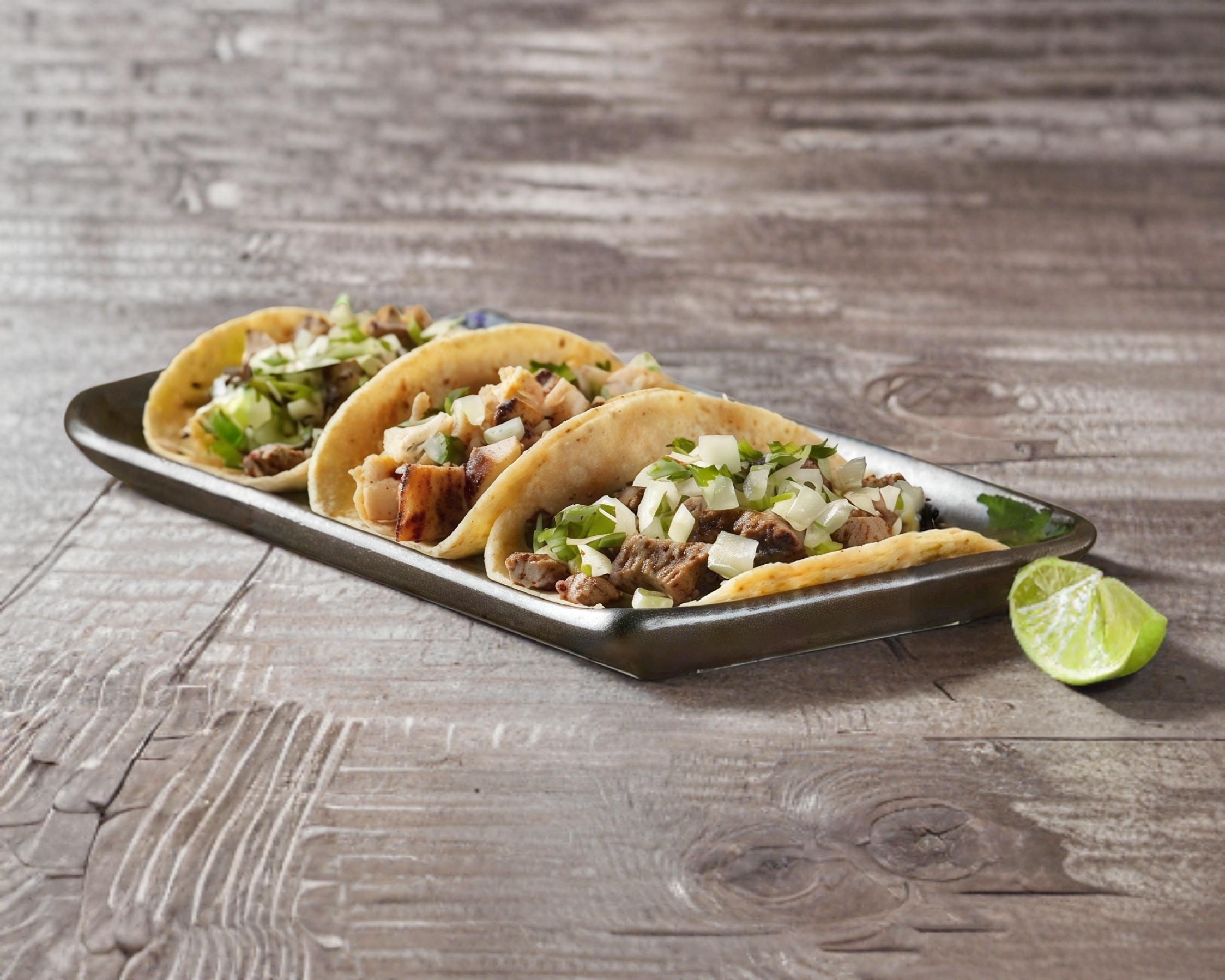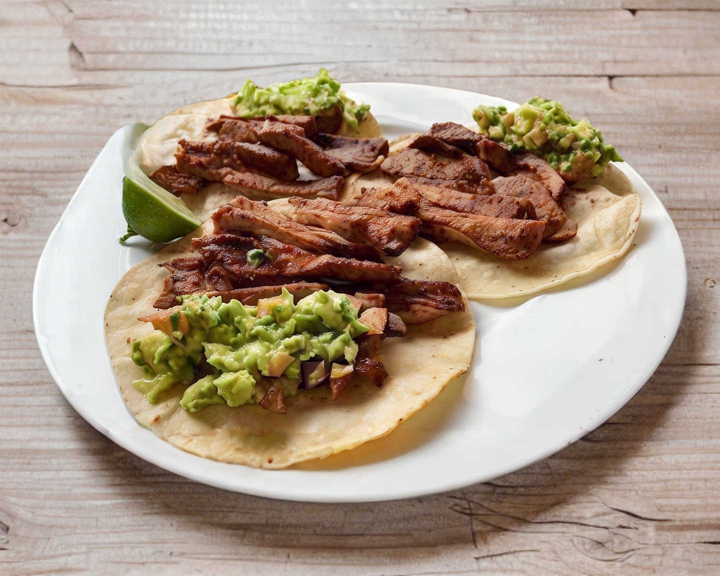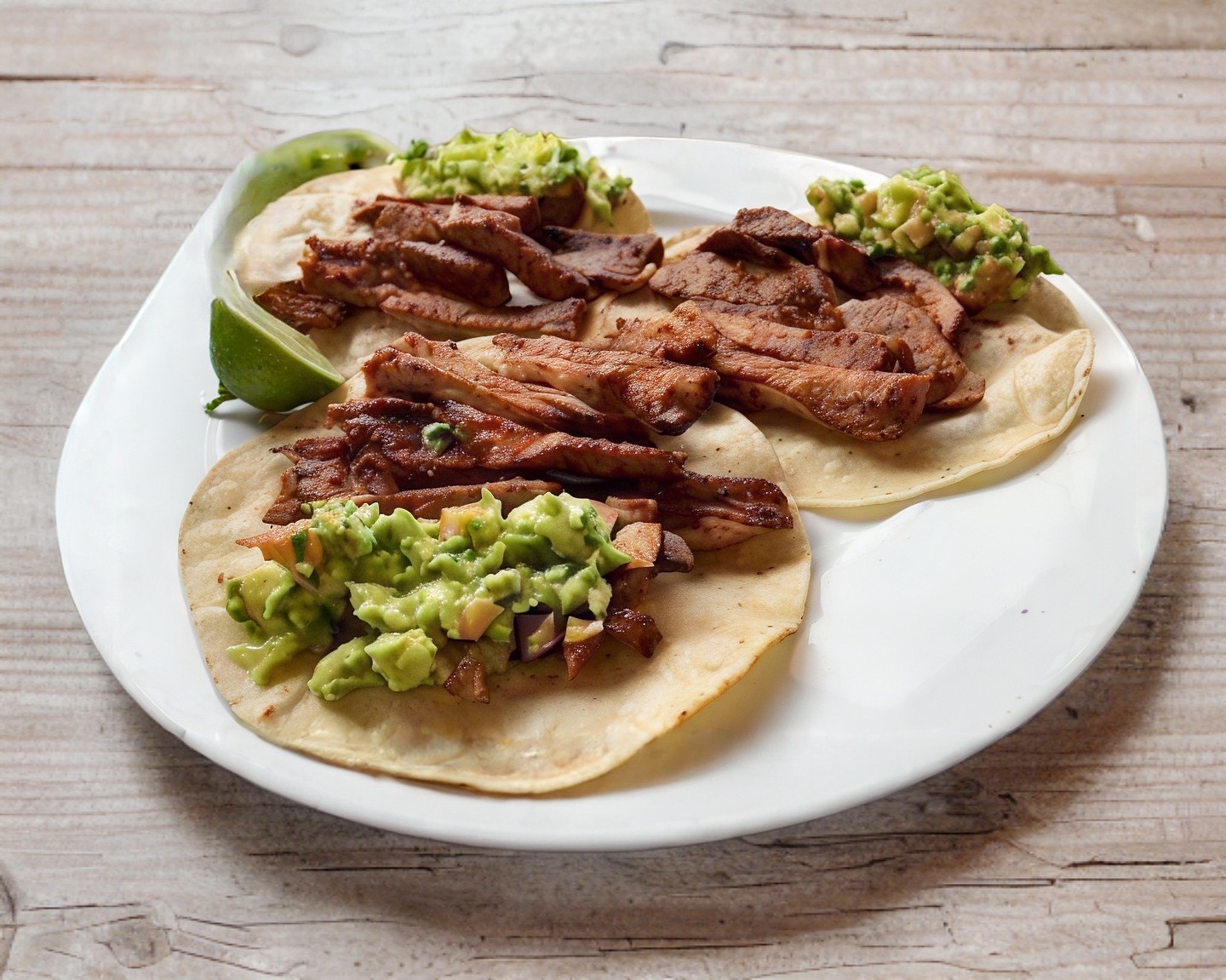 Gozarás de un taco relleno con 70-80 g de carne picada ,no en trozos , servido con una fusión de (papas ,nopales. ) Incluye salsa roja y limones, con guacamole disponible por separado para que lo añadas según tu preferencia.
