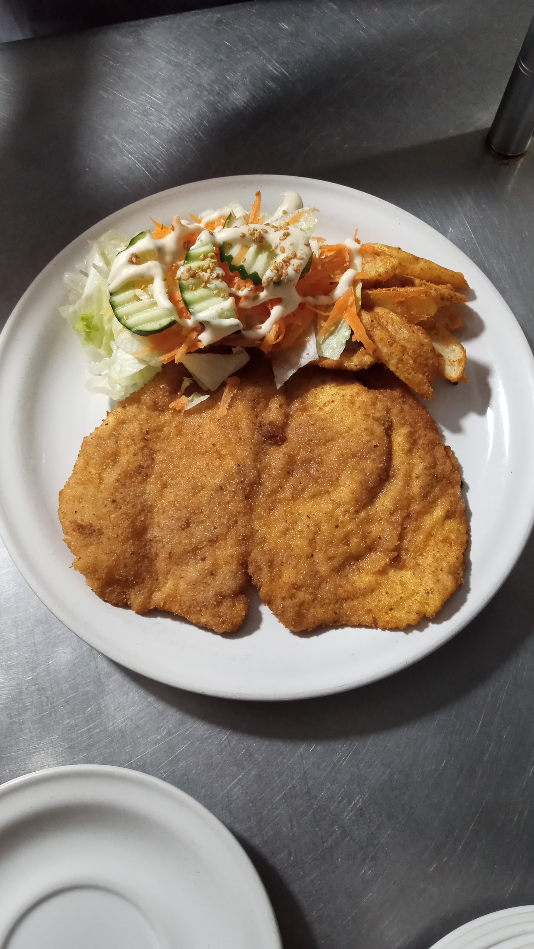 Sopa del Día o Consomé*1 + Milanesa de Ternera con Ensalada y Papas*1 + Postre del Día*1 + Agua del Día*1