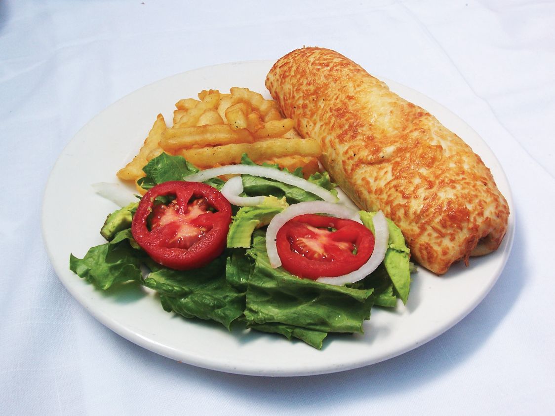 Rollo de pollo con queso mozarella,parmesano,tocino y mezcla de especies