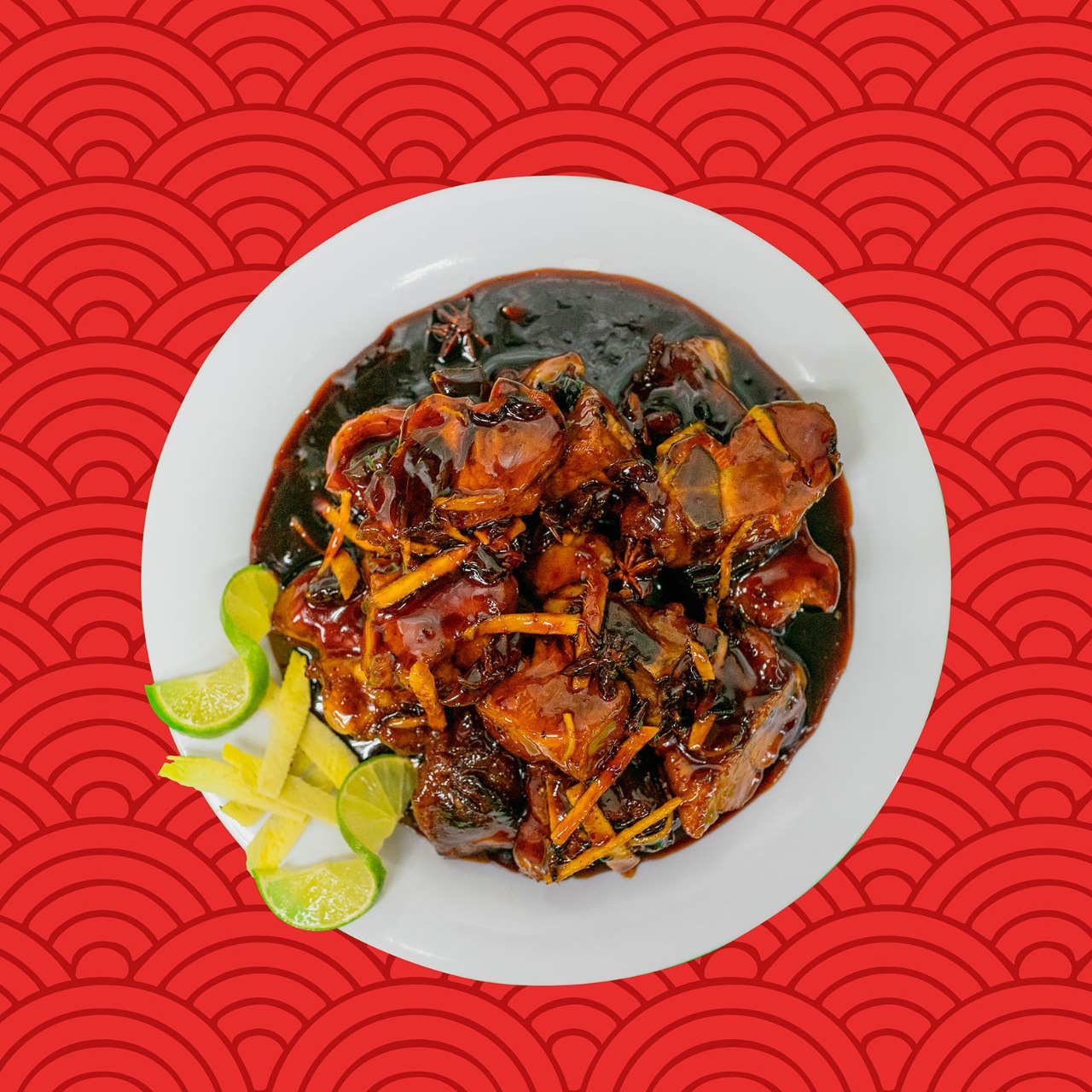 2 guarniciones ,1 guisado a elegir, 1 vaso de agua de frutas 16oz y una galleta de la suerte