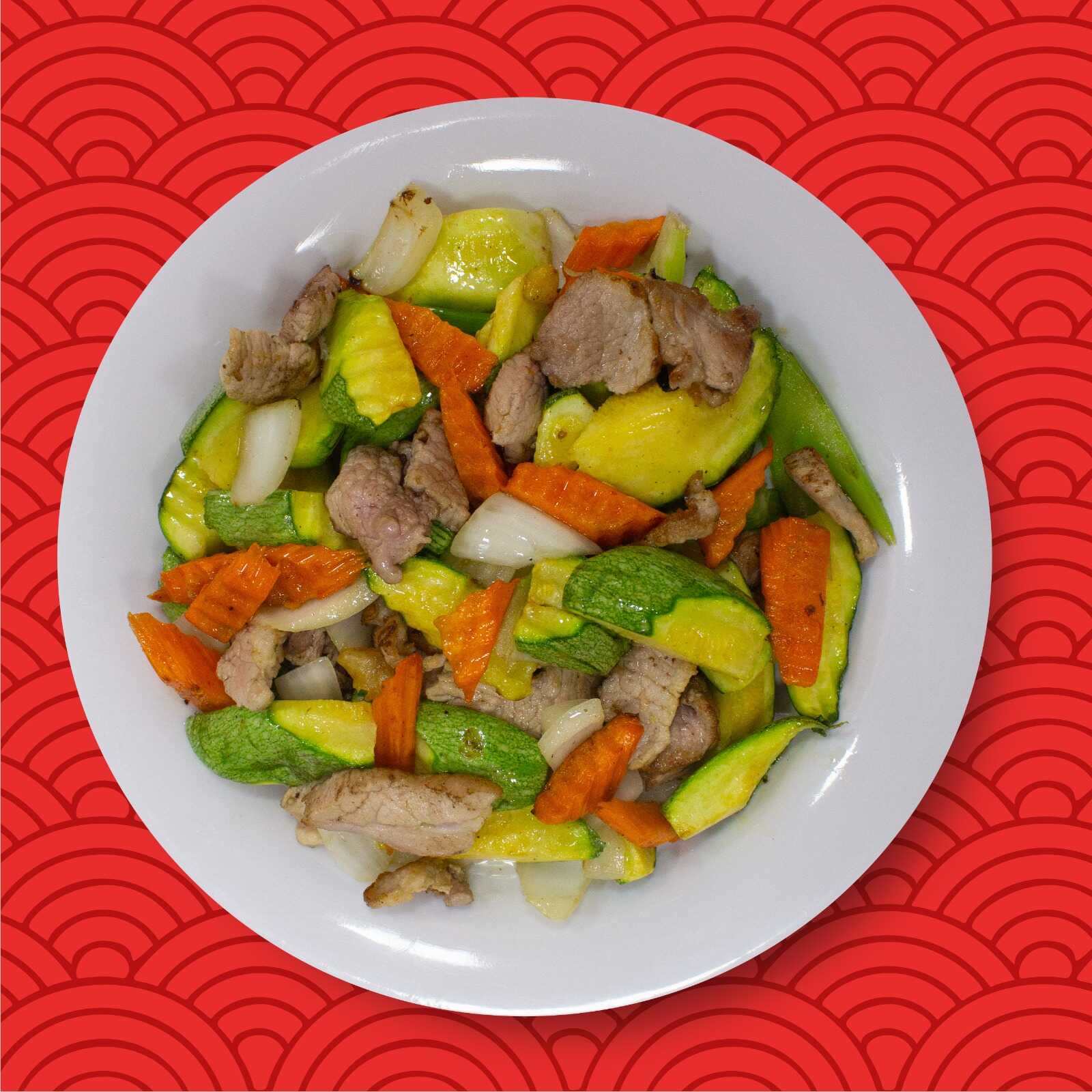 Calabaza con carne de cerdo, zanahoria, cebolla, jicama, apio y delicioso frijol chino