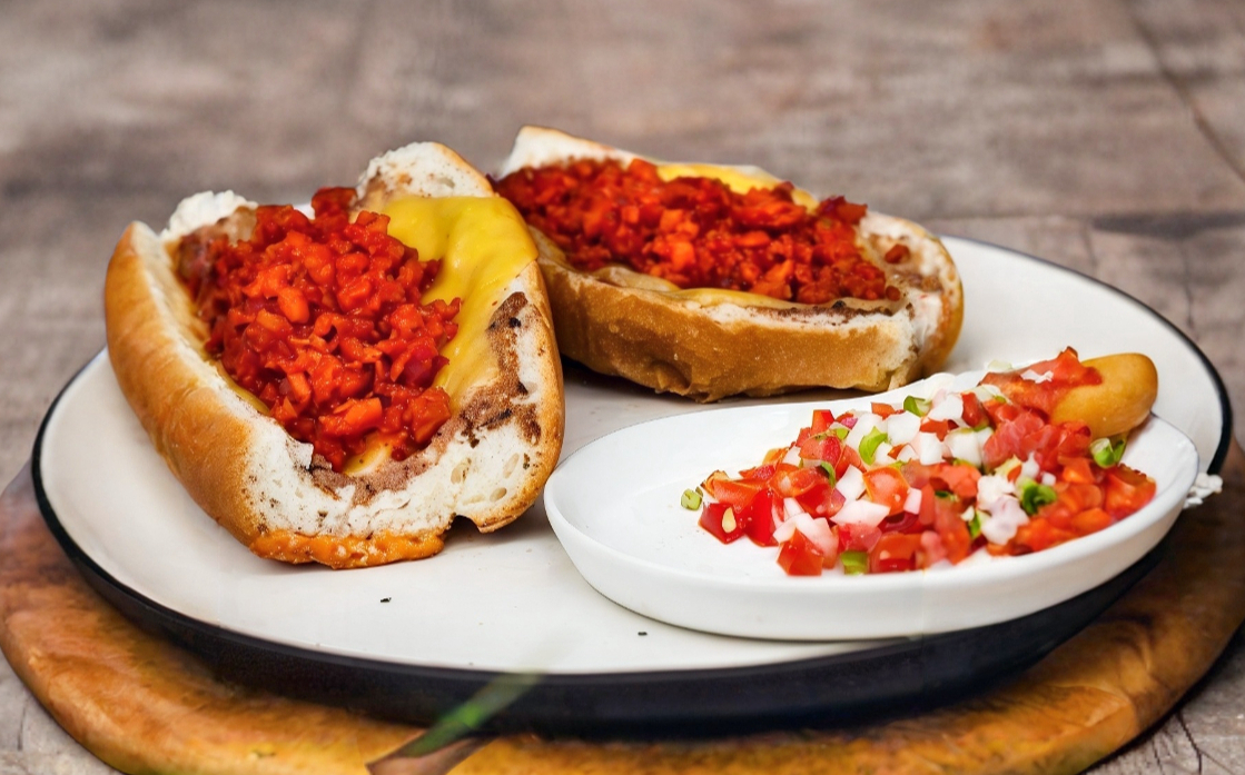 Bolillo doradito con frijoles, gratinados con queso manchego y Tocino.