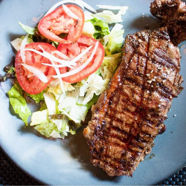 Bife de chorizo (300 gr) del asador argentino, incluye una guarnicion.