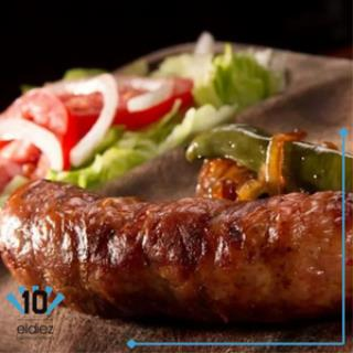 Chorizo estilo "argentino" al carbón con guarnición de ensalada mixta.