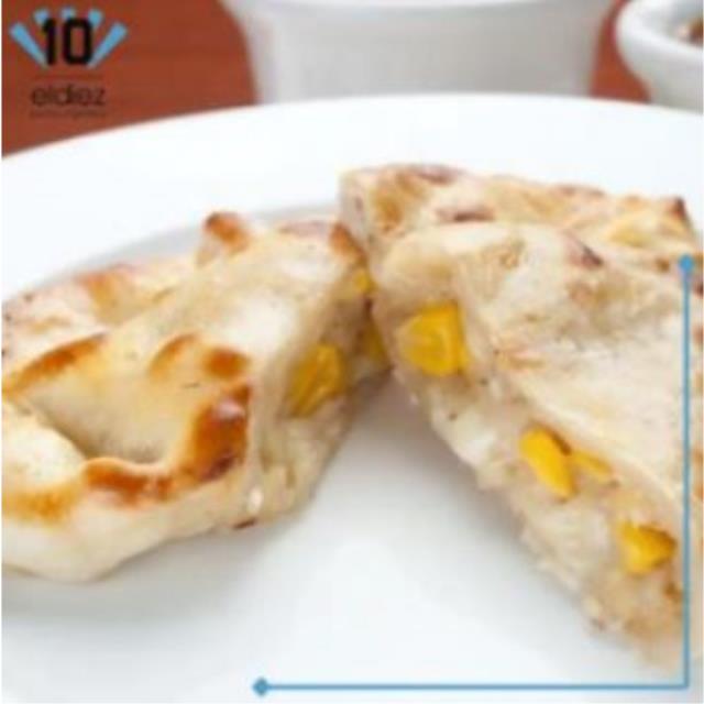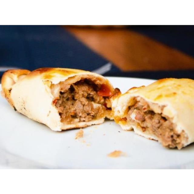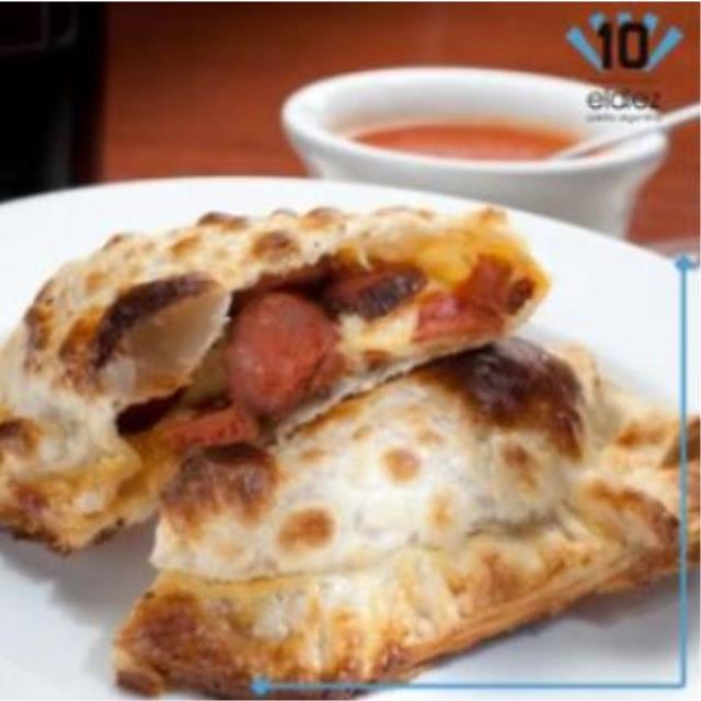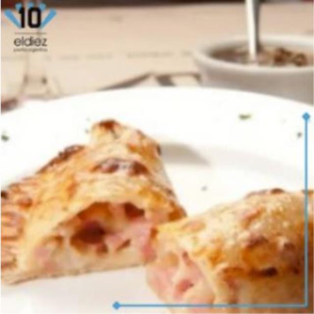 Empanada rellena de espinacas con salsa bechamel, huevos, queso parmesano, pimiento rojo y cebolla.