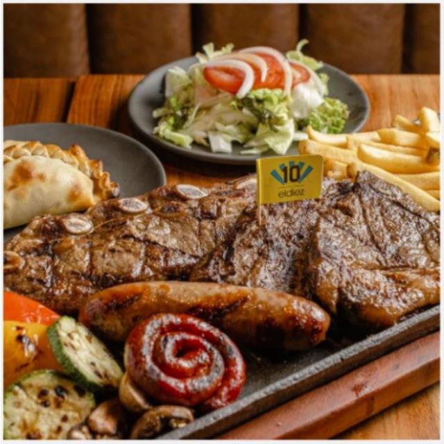 Incluye chorizo, morcilla, arrachera 300 gr, chistorra 100 gr, Bife de chorizo 300 gr, asado de tira 400 gr + 2 empanadas y 3 guarniciones a eleccion