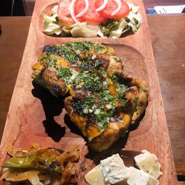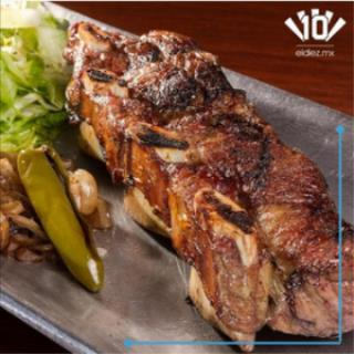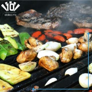 Arrachera, asado de tira, churrasco, chorizo, chistorra, cebolla y chiles toreados + 2 empanadas + 3 guarniciones a eleccion + 1 vino "EL Diez" malbec