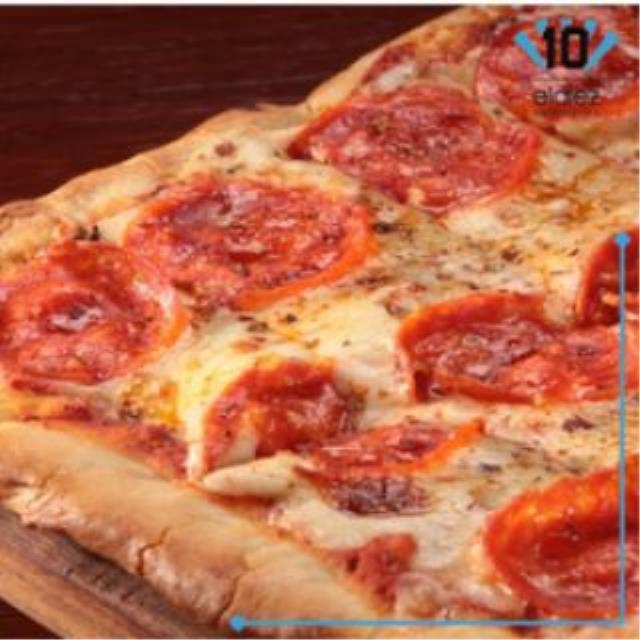 Salsa de tomate, queso mozzarella y pepperoni.