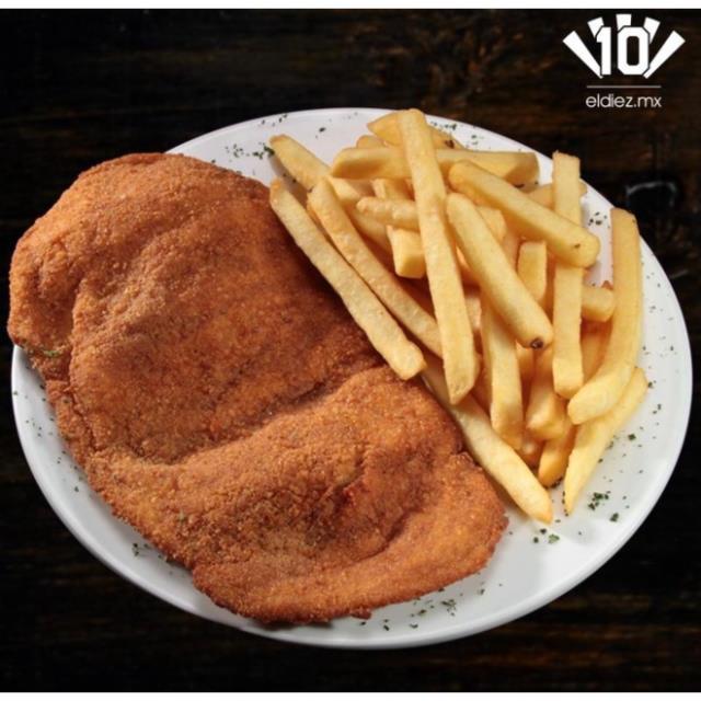 Suprema de pollo, la puedes acompañar con papas a la francesa, ensalada mixta o pure de papas