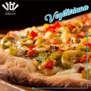Salsa de tomate, queso mozzarella, pimiento rojo y verde, cebolla, calabaza, champiñón y aceitunas.