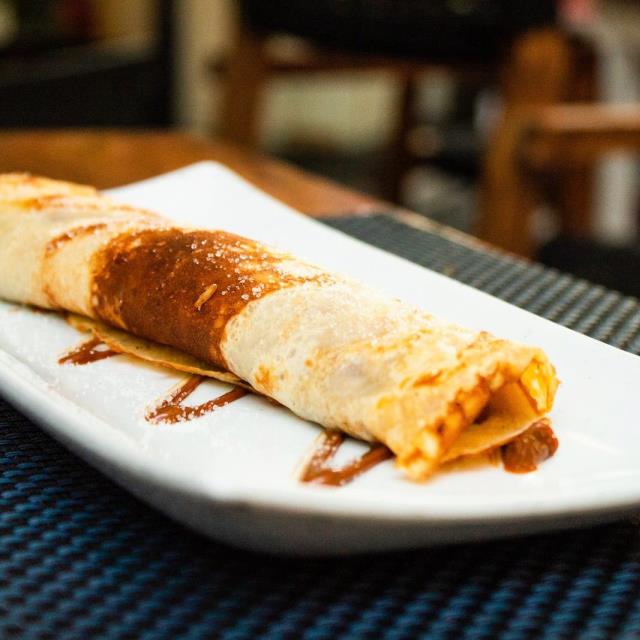 Panqueque tradicional argentino con dulce de leche y plátanos