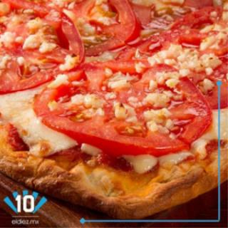 Salsa de tomate, queso mozzarella, rebanadas de jitomate, ajo y orégano.