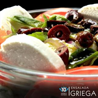 Variedad de lechugas, queso de cabra, cebolla morada, jitomate, palmitos y vinagreta de balsámico y albahaca.