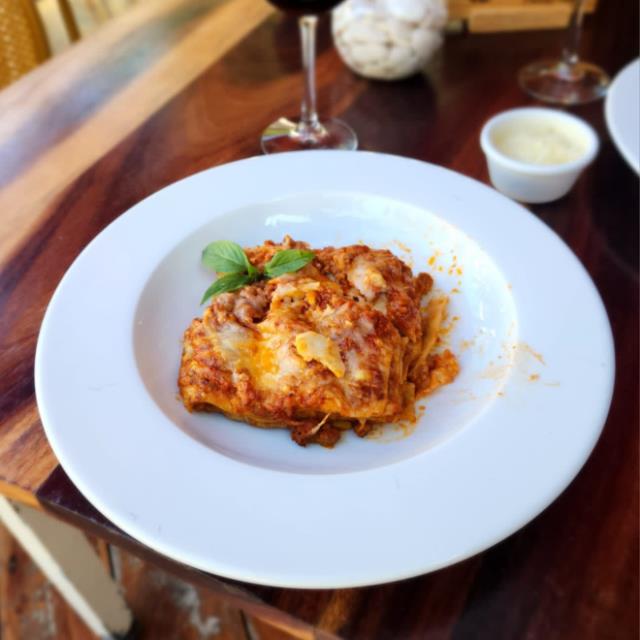 Milanesa de New York gratinada con queso Gouda, jamón y salsa tucco, acompañada de papas a la francesa, puré de papas o ensalada.