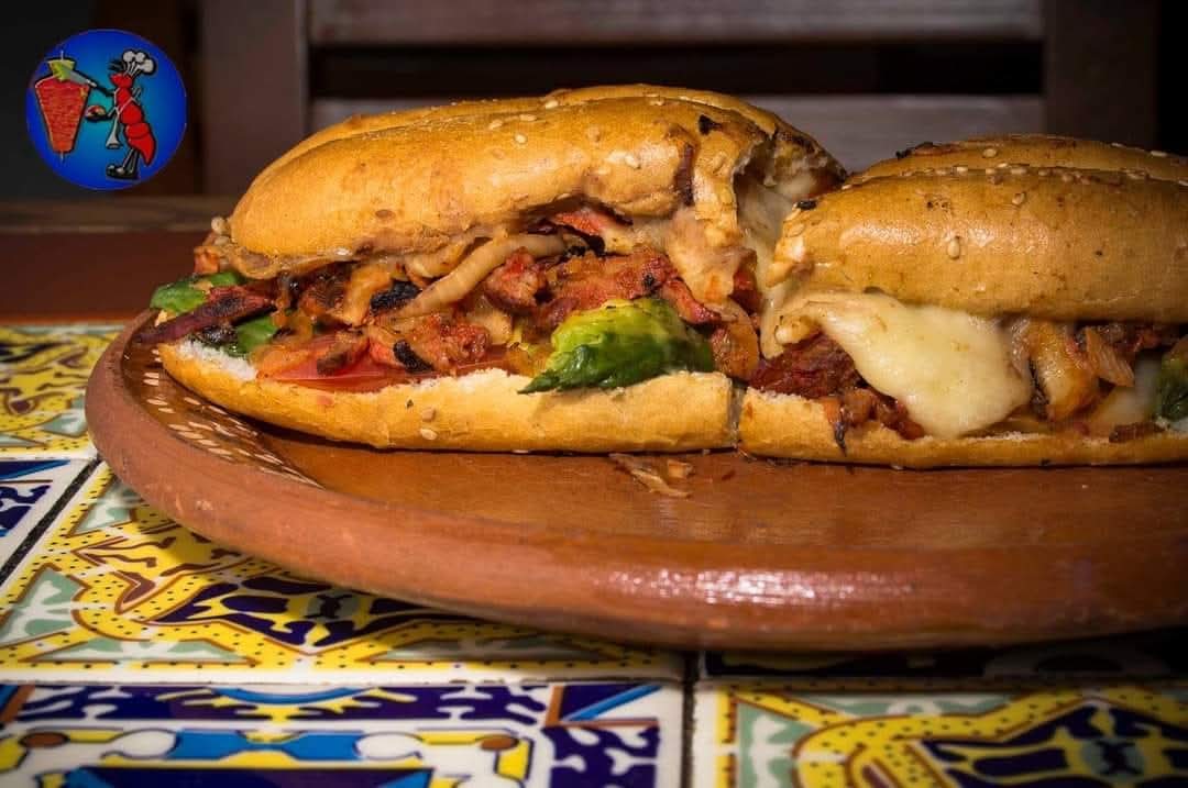 Torta con cochinita pibil.