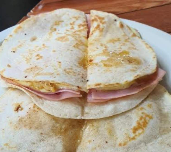 Tortilla con jamón y queso.