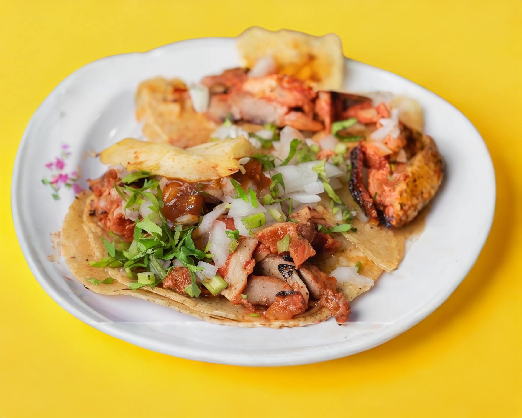 Orden de tacos de costilla con cebollitas.