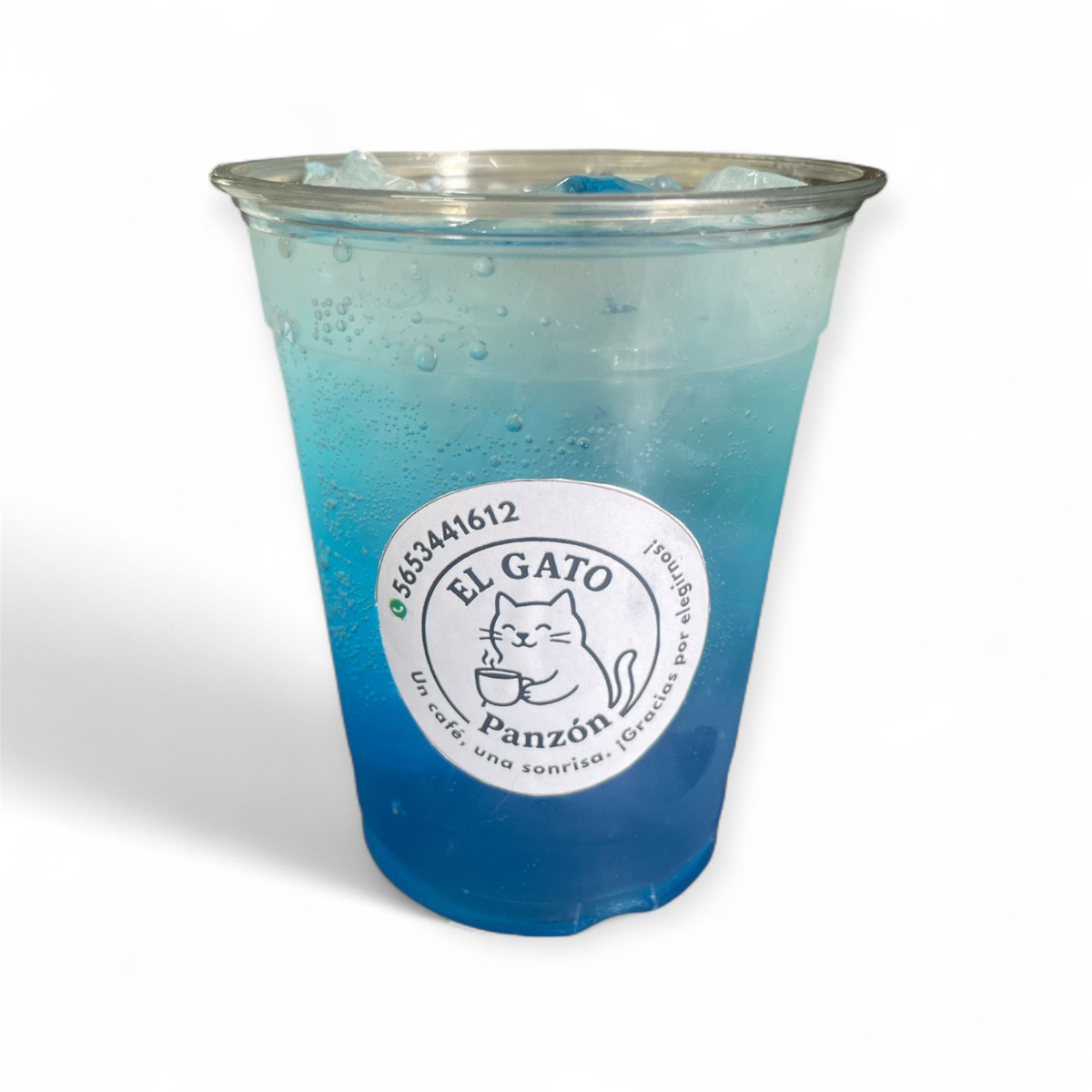 Bebida refrescante de agua carbonatada con sabores frutales.