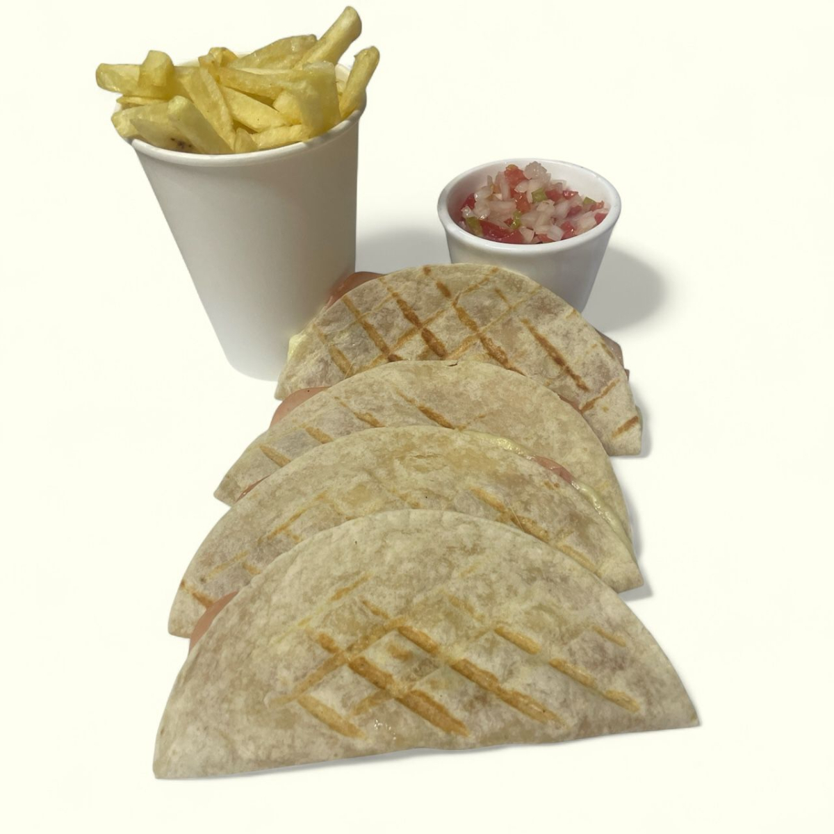 Orden de 4 sincronizadas (pico de gallo y una pequeña racion de enzañada)
