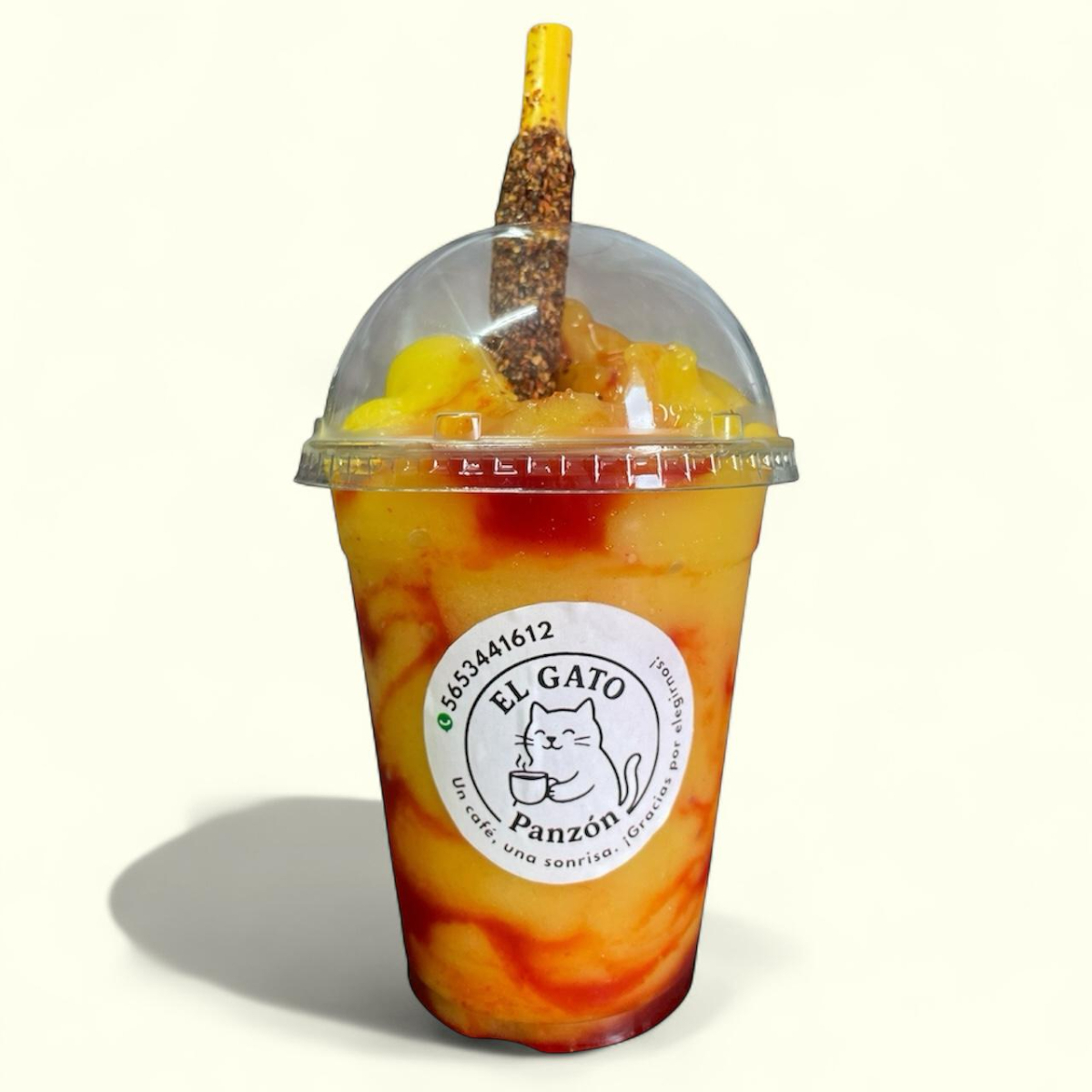 Bebida Refrescante a base de hielo, chamoy y miguelito.