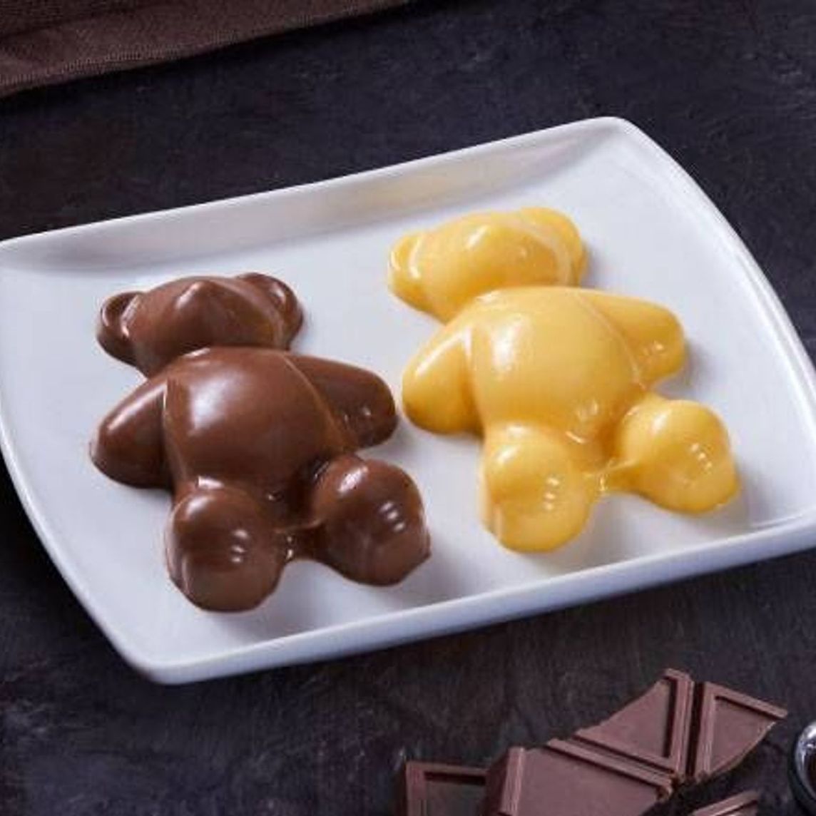 Gelatina de leche con forma de ositos sabor vainilla y chocolate.