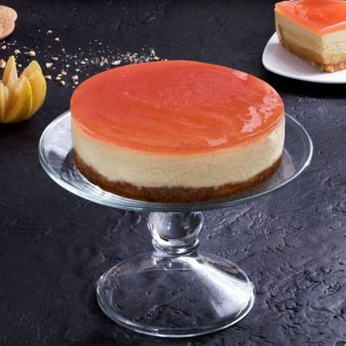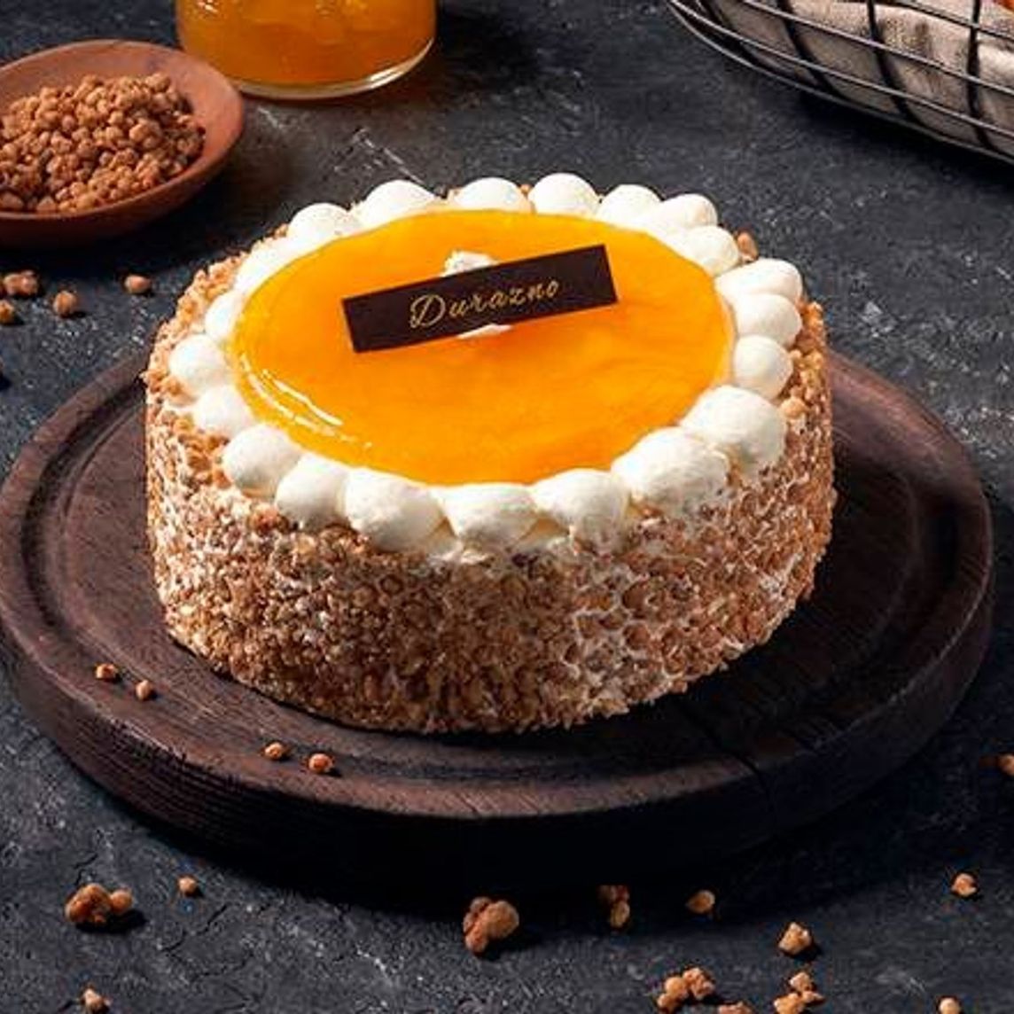 Panque de vainilla cubierto con deliciosa pulpa de chabacano y dulce gragea blanca