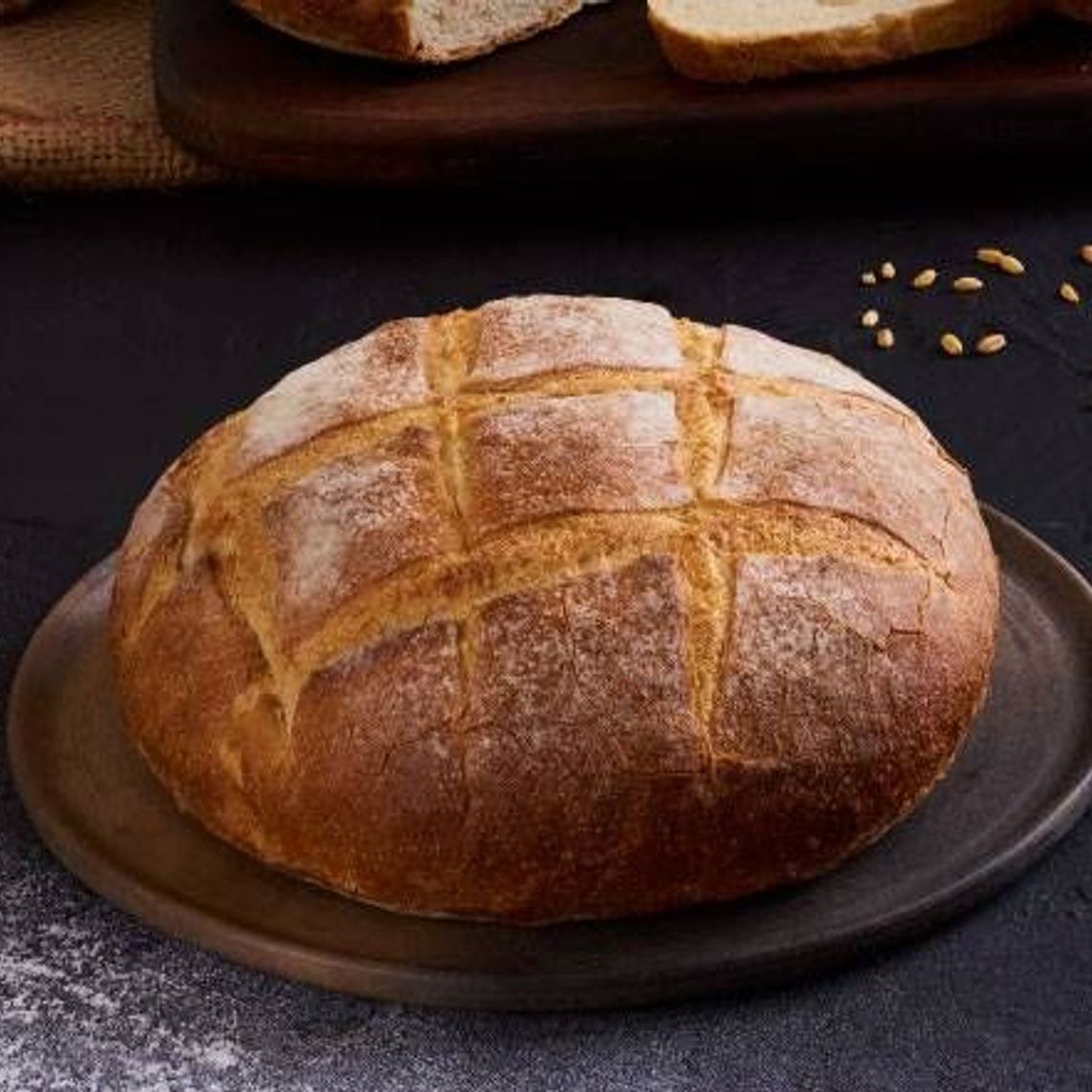 Pan rústico elaborado con masa madre con sabor ácido. Corteza crujiente y miga suave por dentro.
