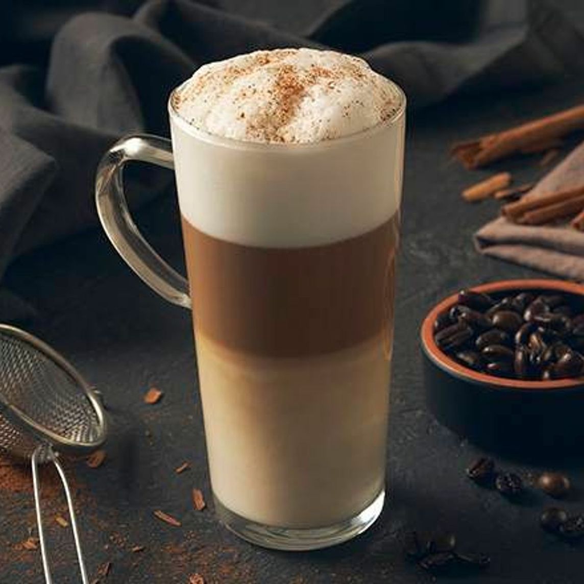 Bebida caliente de expresso intenso suavizado con leche vaporizada, logrando una textura cremosa y un sabor elegante.