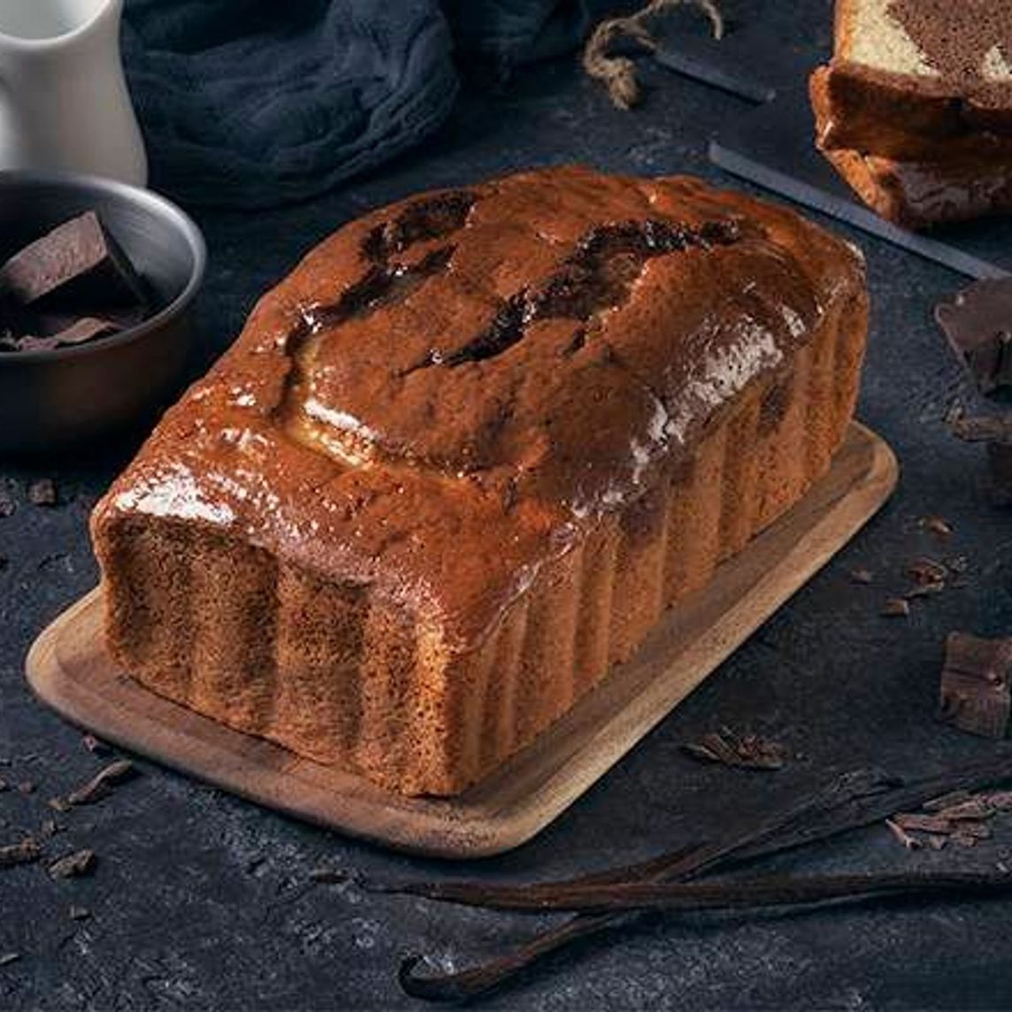 Exquisito panqué con mantequilla, vainilla y chocolate.
