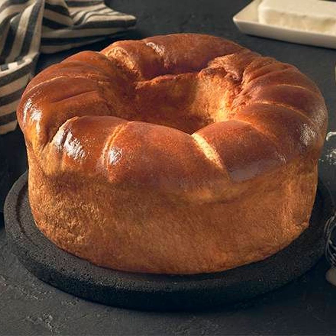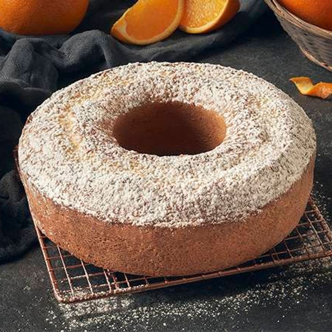 Deliciosa rosca familiar de naranja. Elaborada con cáscara de naranja y mantequilla, de textura suave, húmeda y esponjosa, con intenso sabor a naranja y mantequilla. La corteza es suave y de color dorado característico. 650 g.