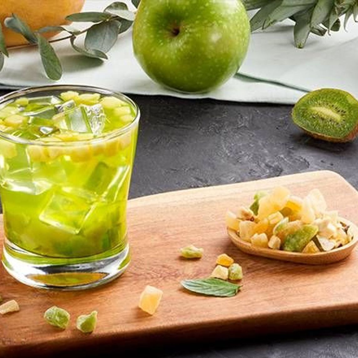 Deliciosa bebida elaborada a base de una combinación de kiwi, mango y piña deshidratada, acompañada del exquisito sabor del maracuyá, que crean una rica y original bebida.