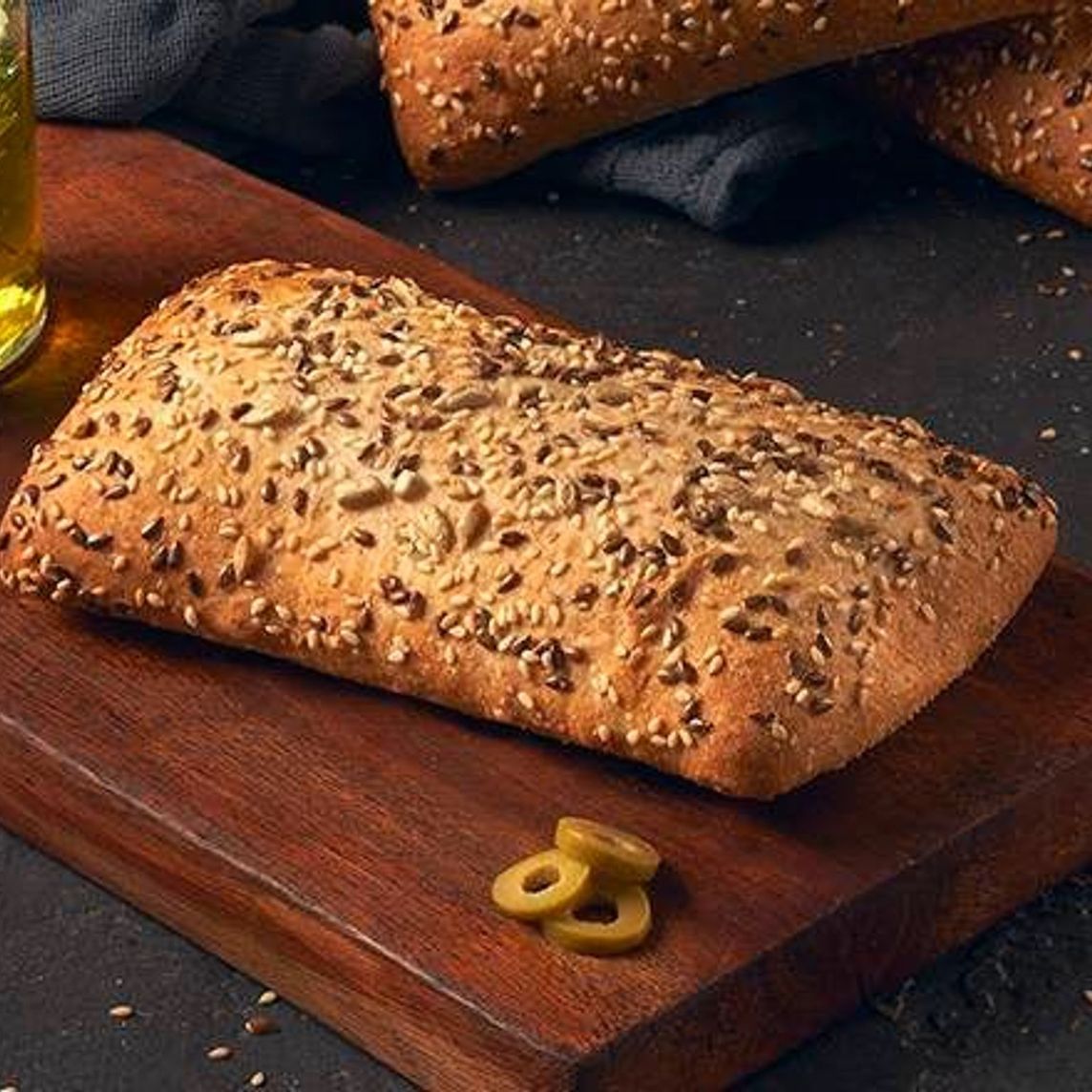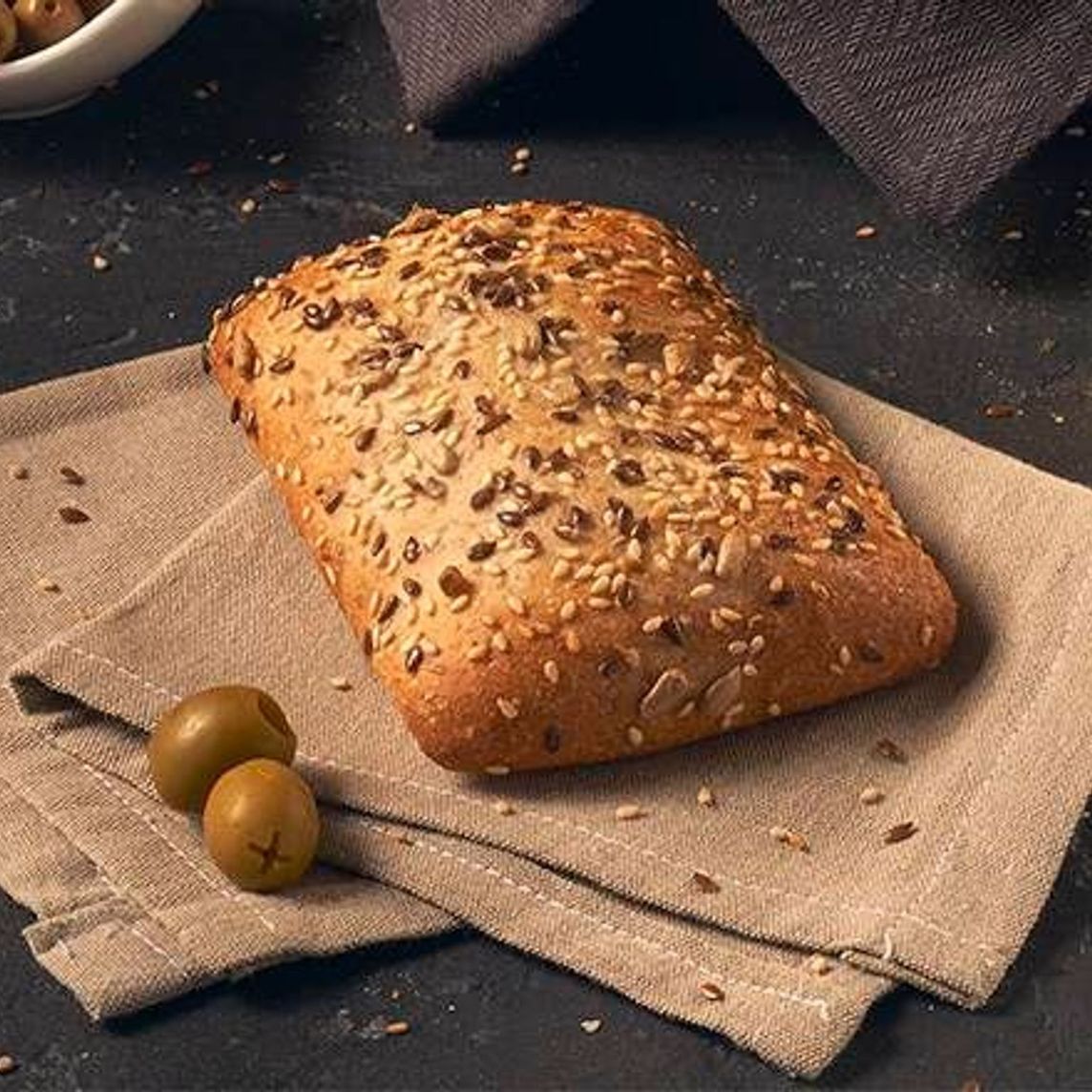 105 g. Típico pan rústico italiano elaborado con aceite de oliva y granos.