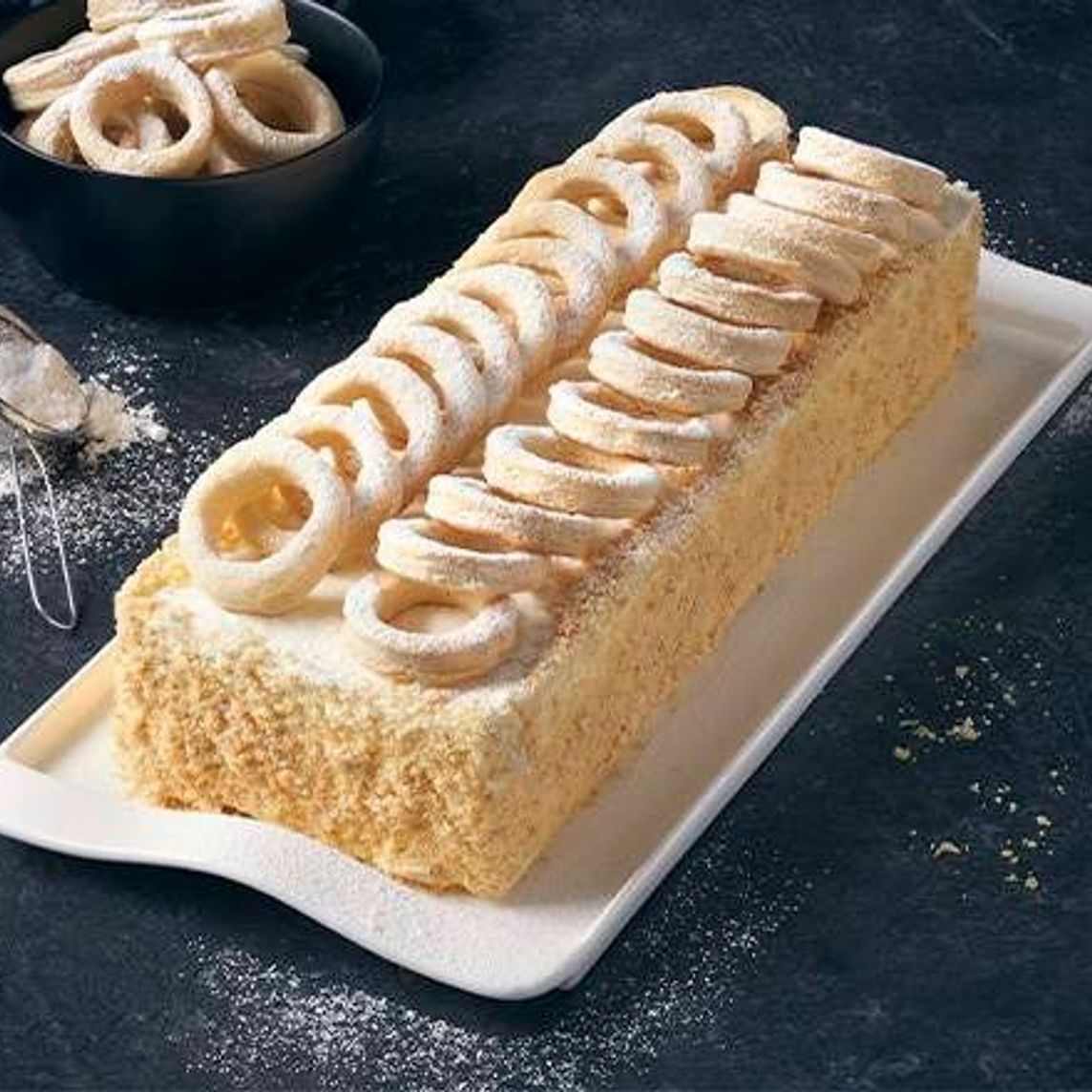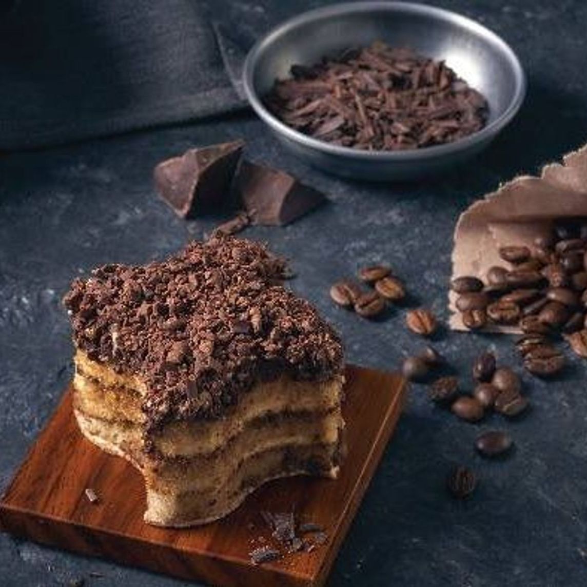 Delicioso postre francés, con una masa ligera rellena de crema pastelera, cubierta por una deliciosa crema de café y decorado con trocitos de chocolate de leche. (160 g)