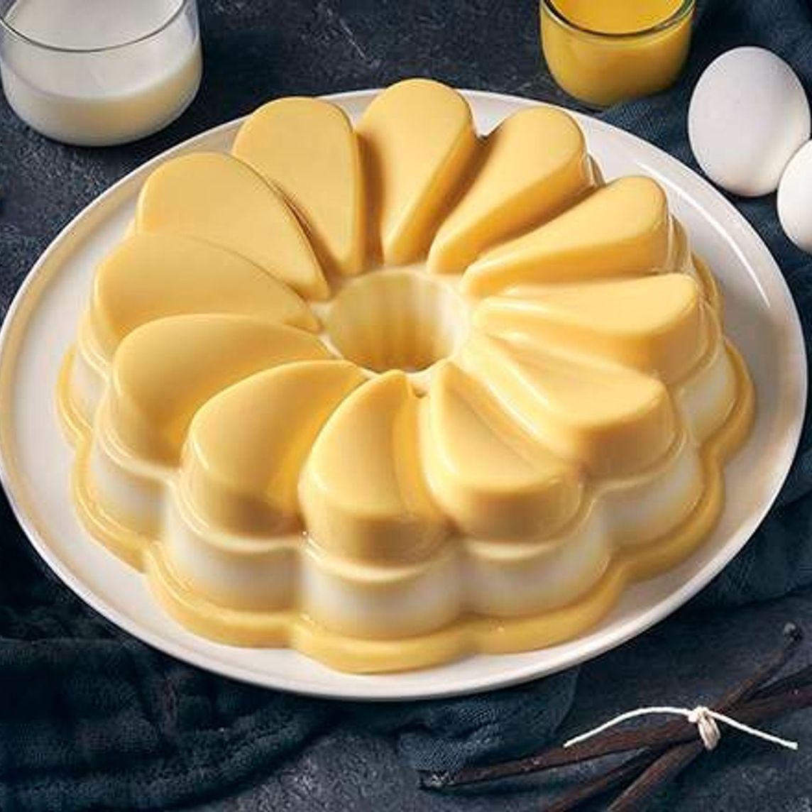 Cremosa gelatina elaborada con extracto de aromática vainilla y rompope.