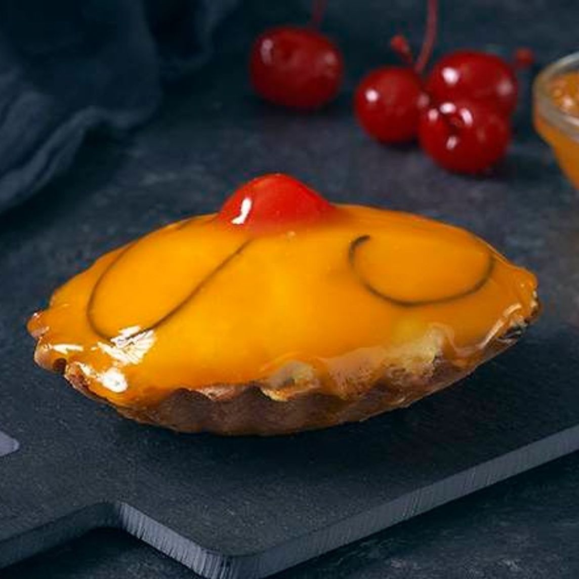 Pasta sableé rellena de sabroso mousse de mango con dulce mermelada de mango y cereza. (150 g)