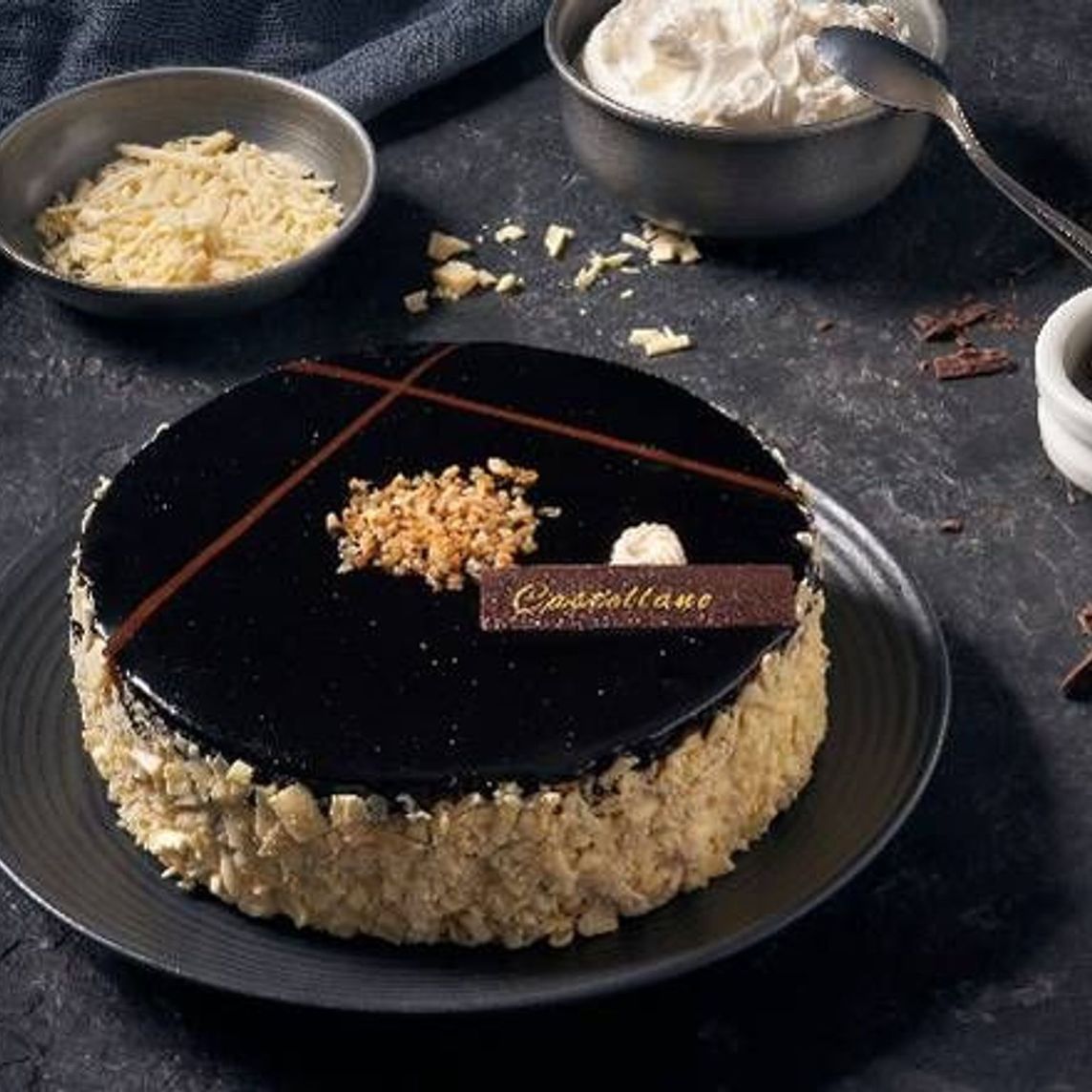 Pastel con crema al kirsch y trufa, delicado bizcocho de chocolate y gustoso jarabe de cereza negra al kirsch. (90 g)