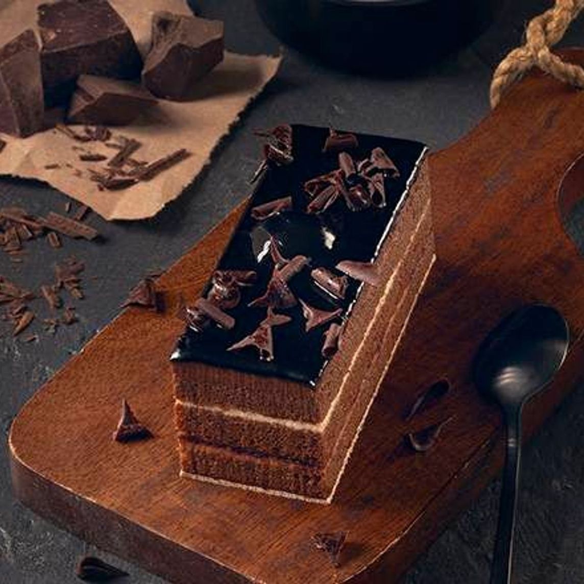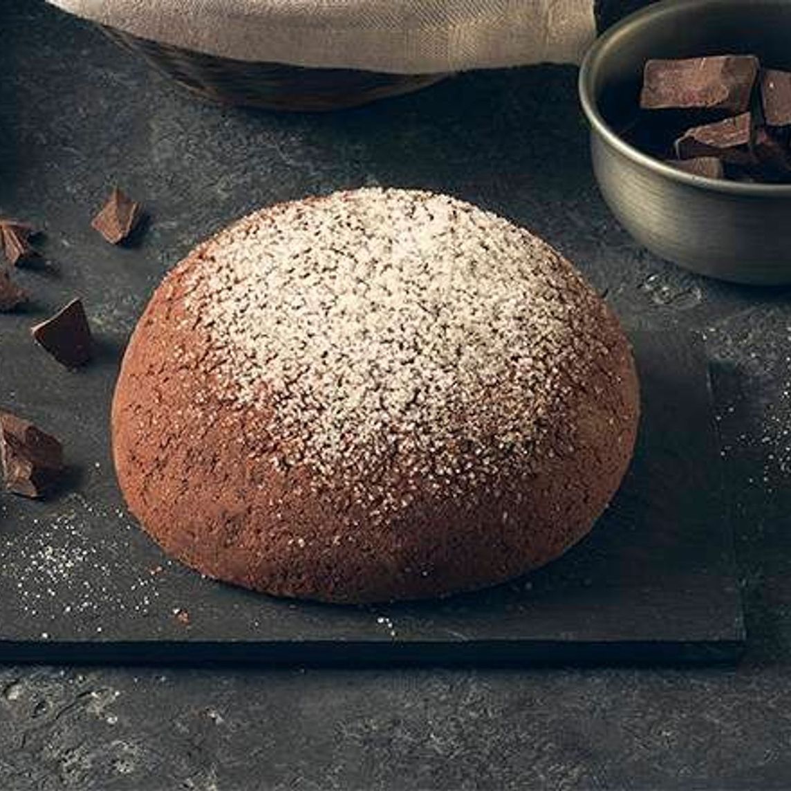 Exquisito pan de chocolate elaborado con mantequilla, cubierto con fondant de chocolate.