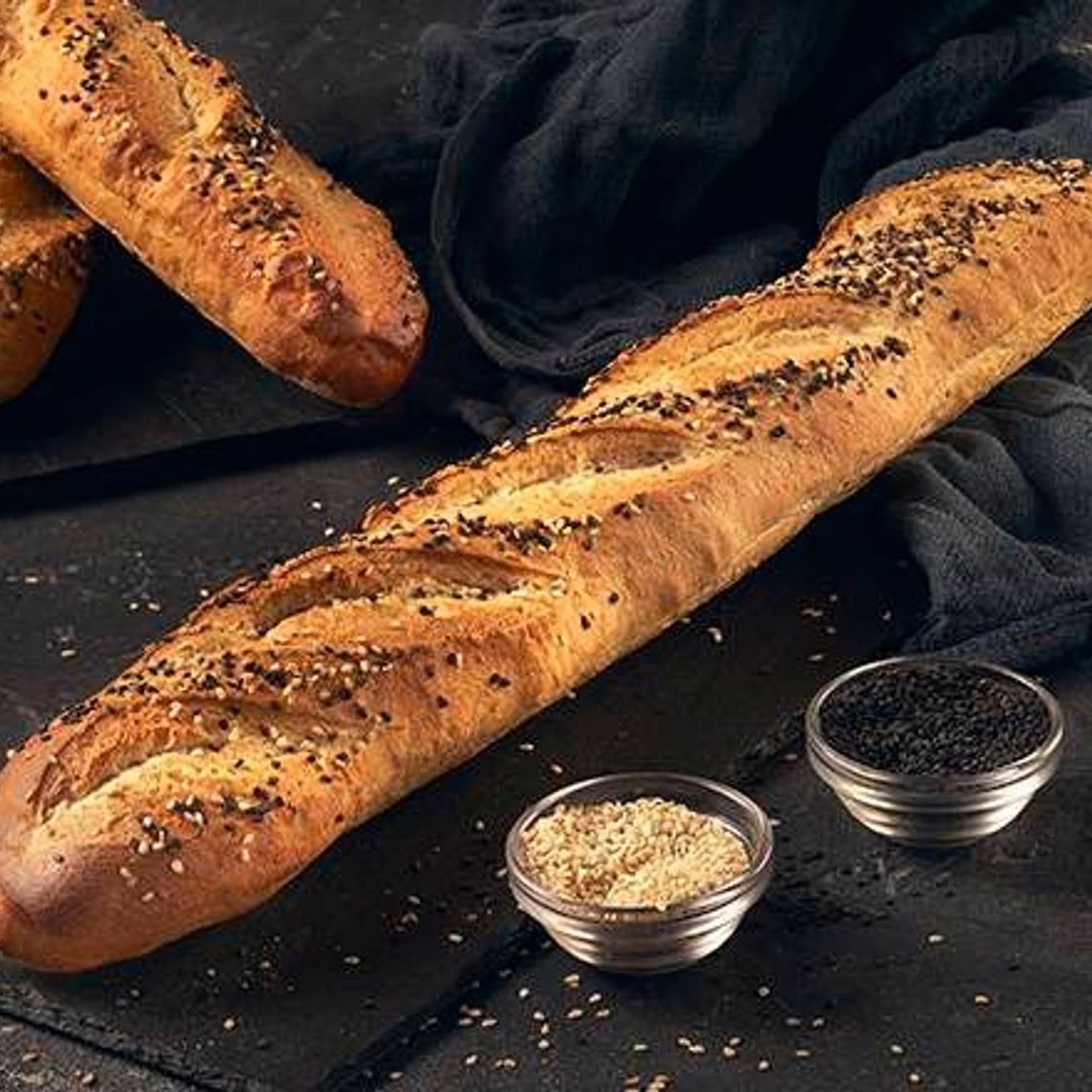 300 g. Barra tradicional parisina con ajonjolí blanco en la superficie.