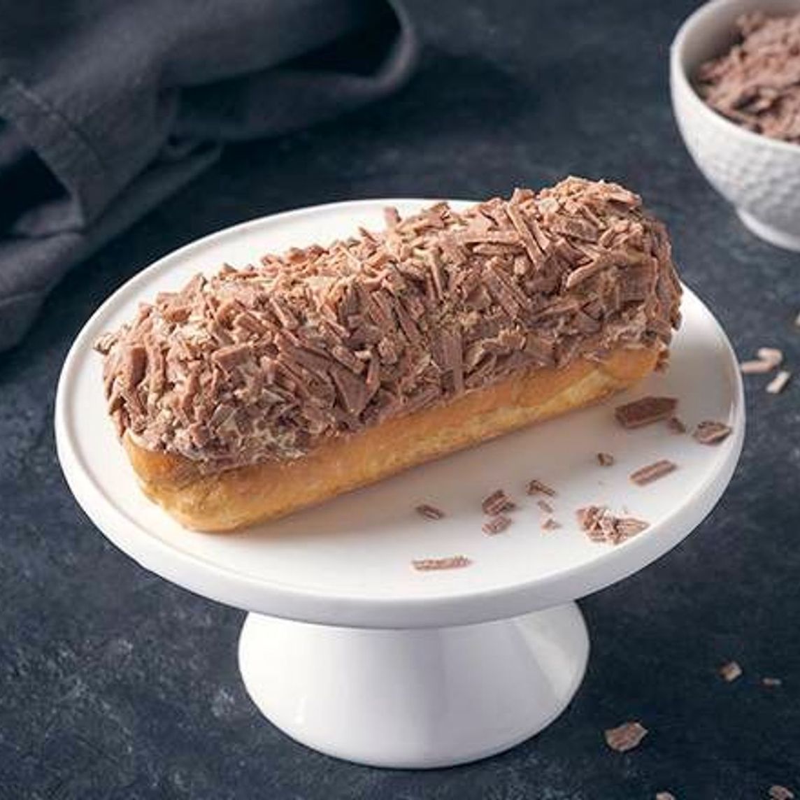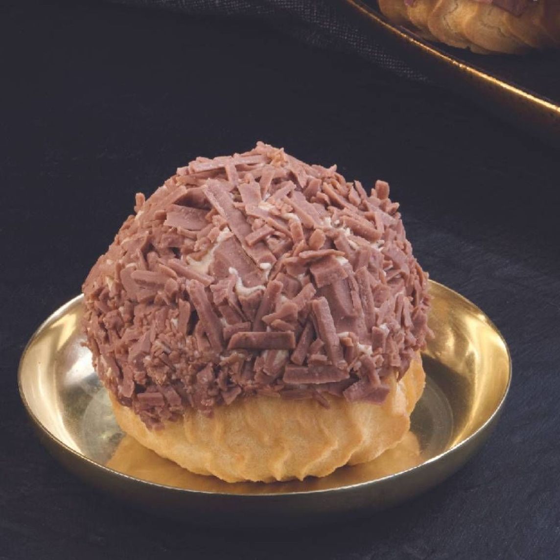 Postre relleno con delicada crema pastelera, cubierto con crema chantilly de café y deliciosa ralladura de chocolate. (109 g)