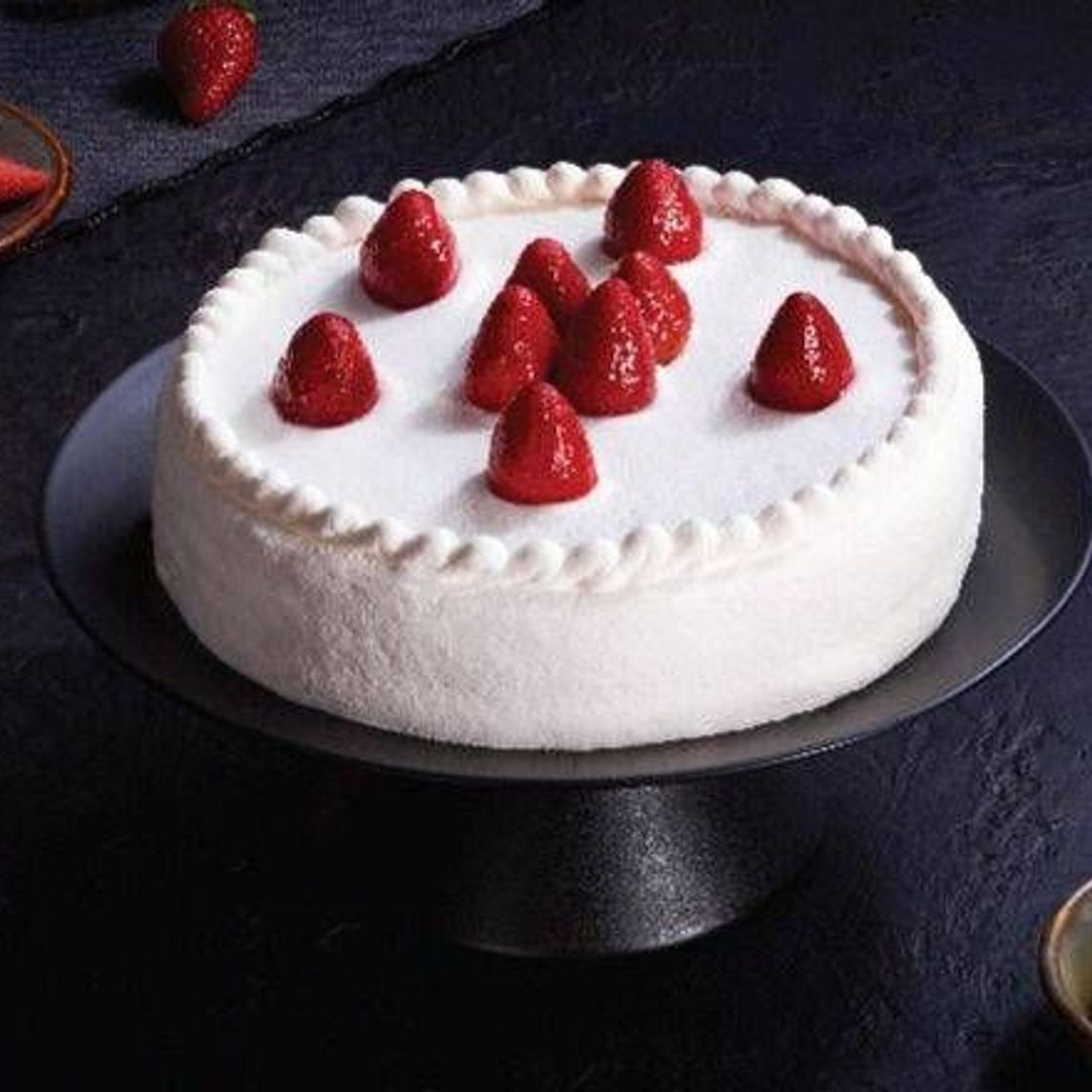 Pastel inspirado en el mundo K-Pop, con pan de arcoíris (azul, rosa, amarillo y violeta), relleno y cubierto de suave crema de malteada de fresa, con un decorado que te encantará.
