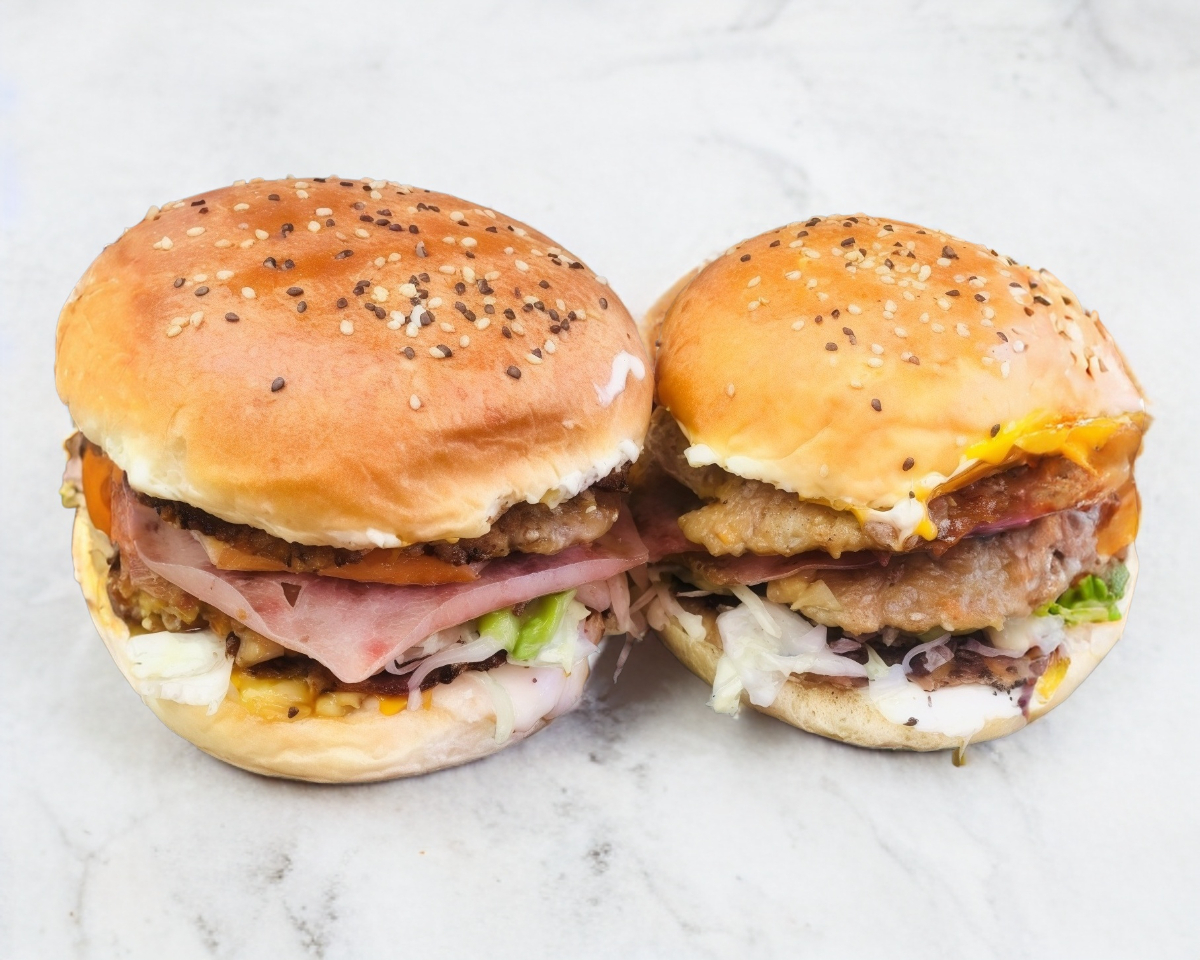 Doble carne, doble queso, queso amarillo, doble queso manchego, lechuga, mayonesa, mostaza, jitomate y cátsup.